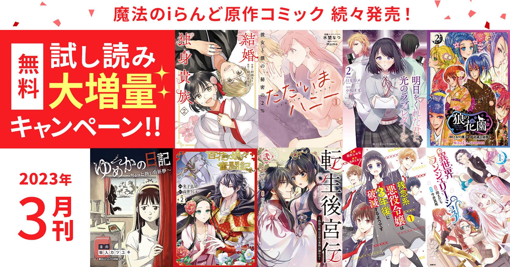 - 【魔法のiらんど原作の3月刊行コミック 試し読み大増量キャンペーン!】