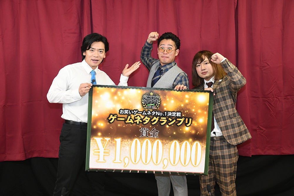 並み居るゲーム好き芸人が名を連ねる中、決勝へはシューマッハ、超平和万博、無尽蔵、ものまね三銃士の4組が進出。最終的に「3大RPGは?」をお題にした掛け合いで会場を爆笑の渦に巻き込んだ超平和万博が優勝となり、賞金として100万円が贈呈されました。