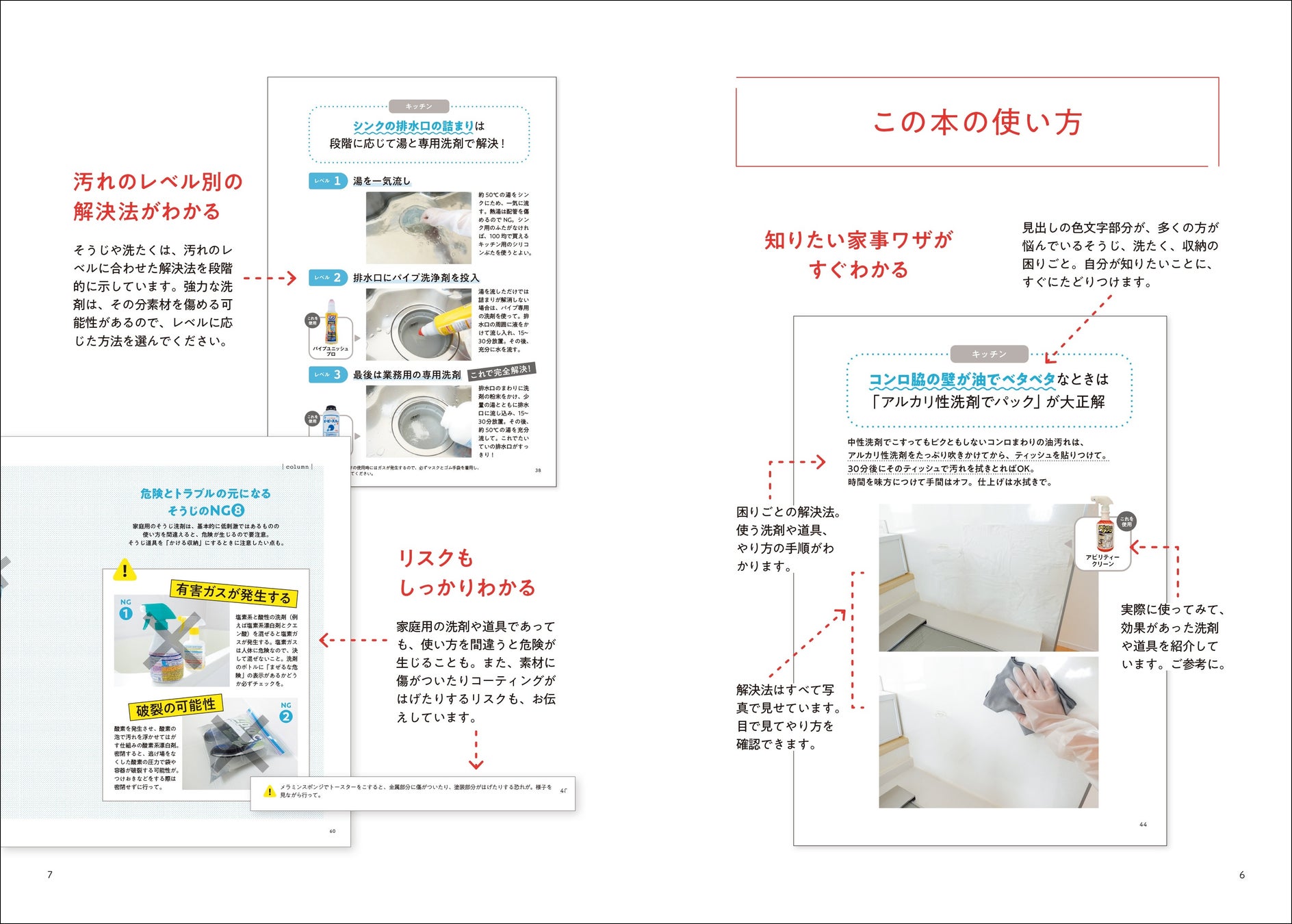 「浴室のカビや黒ずみ」「ステンレス鍋の白いもやもや」「洗たくしたのにとれないシミ、黄ばみ、におい」「家具の予備パーツが行方不明」など、暮らしの「困った」の解決法を具体的に解説。つい放置していた家の中の「気になる…」がスイスイ解消できます。