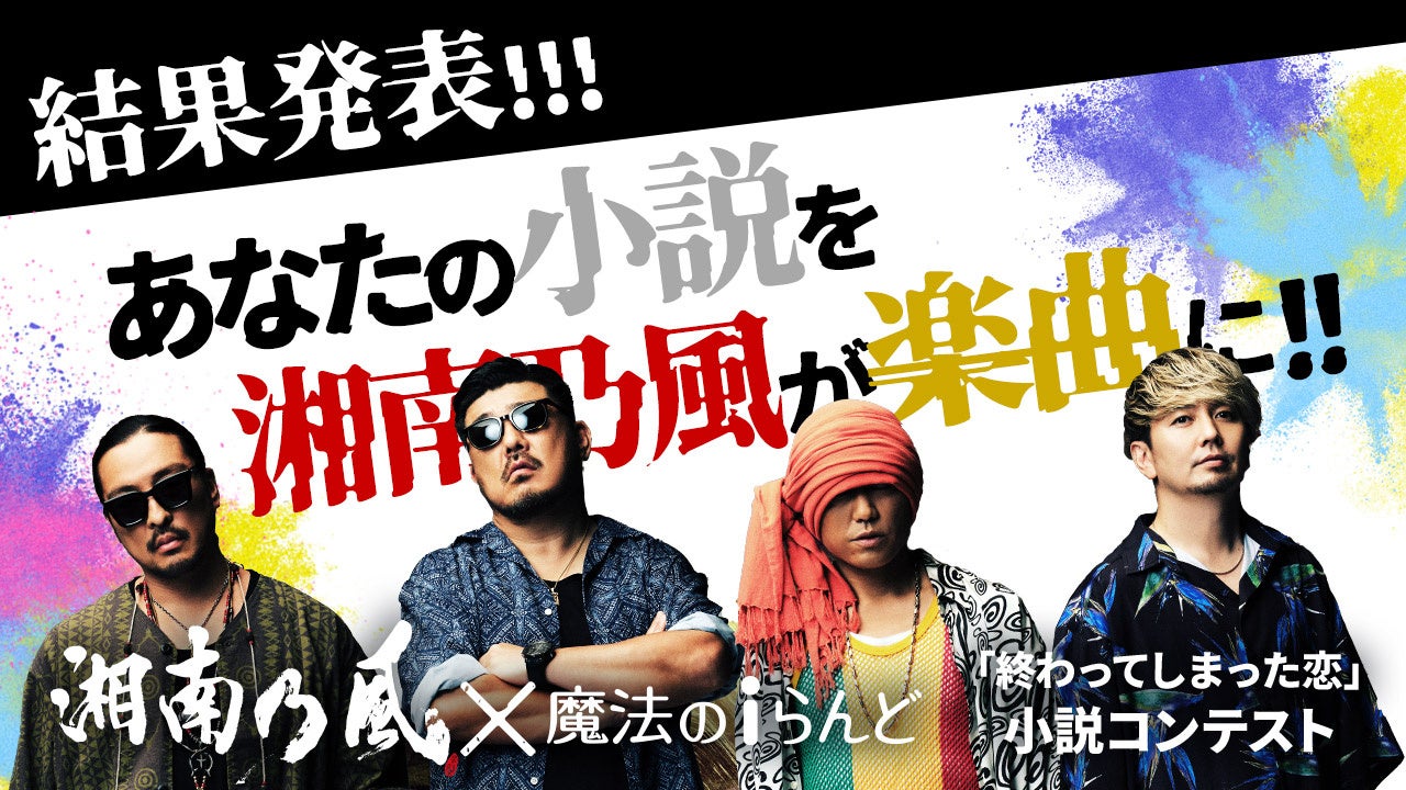 今年デビュー20周年を迎える「湘南乃風」が「魔法のiらんど」とコラボし、「終わってしまった恋」小説コンテストを開催。(応募受付期間:2022年11月25日(金)12:00 ~2023年1月15日(日)23:59投稿分まで)。