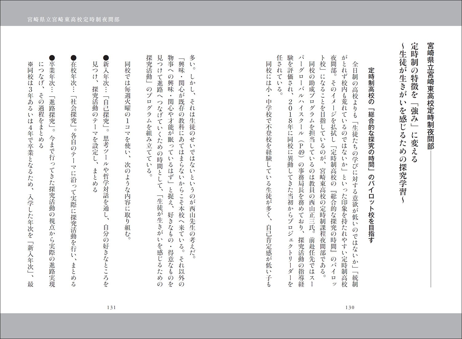 教育関係者はもちろん、子どもの学校選びに有益な情報を得たい保護者や、子どもとの関わり方を知りたい大人たち全般にとって、ヒントやアイデアが詰まっている書籍となっています。