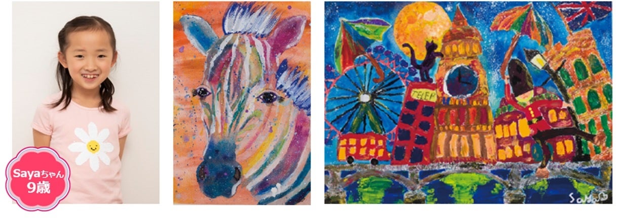 圧倒的なインパクトと洗練された豊かな色彩が特徴的なSayaちゃんの作品。その世界観は2~5歳までに体験したイギリスでの暮らしが影響しているといいます。さまざまな国籍の人たちや本物のアートと触れ合えるイギリスの文化や、日本とは違う子育ての考え方や教育カリキュラムについて紹介しています。