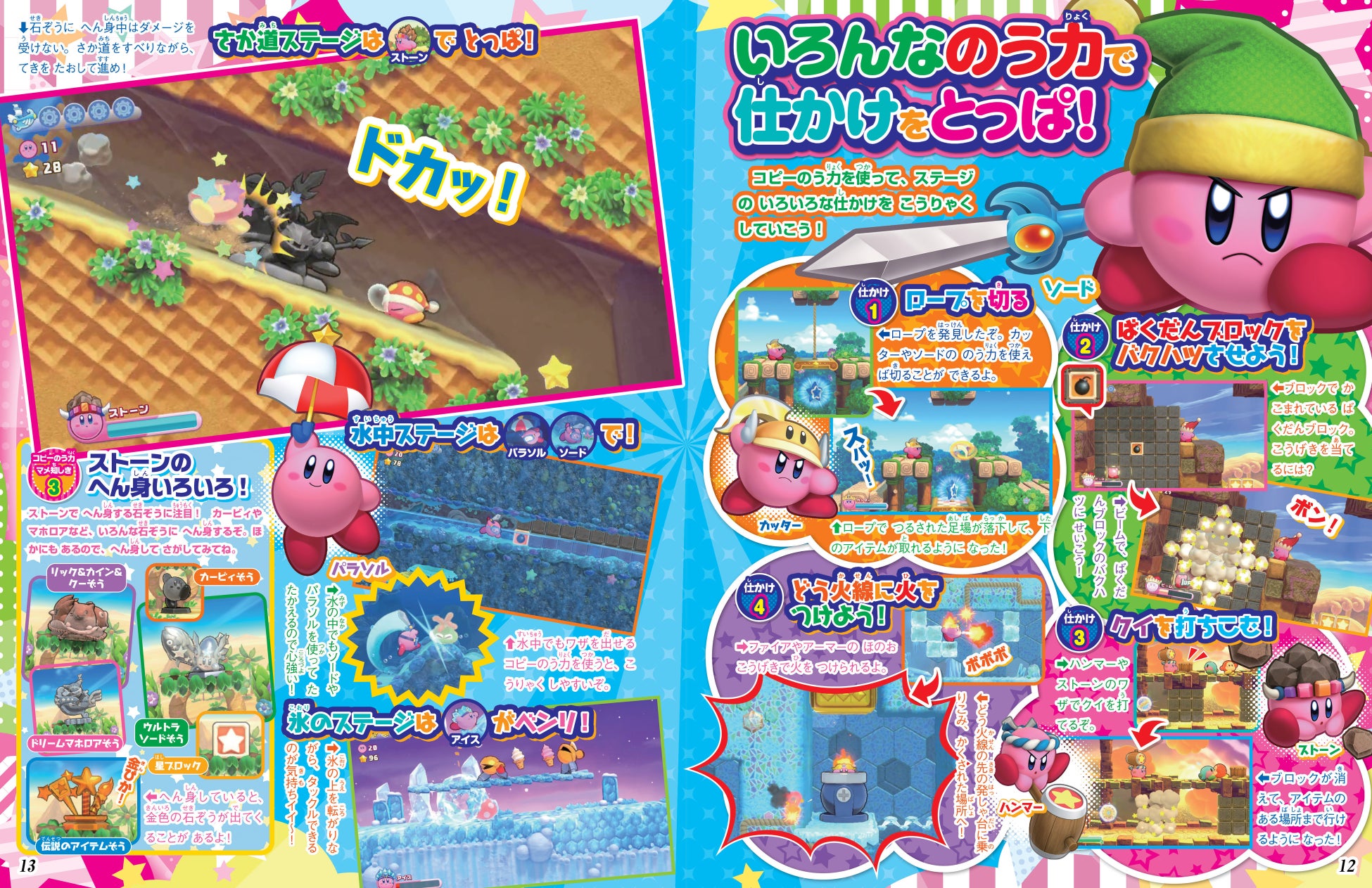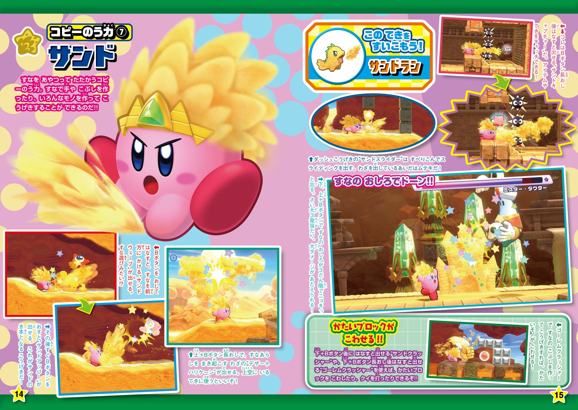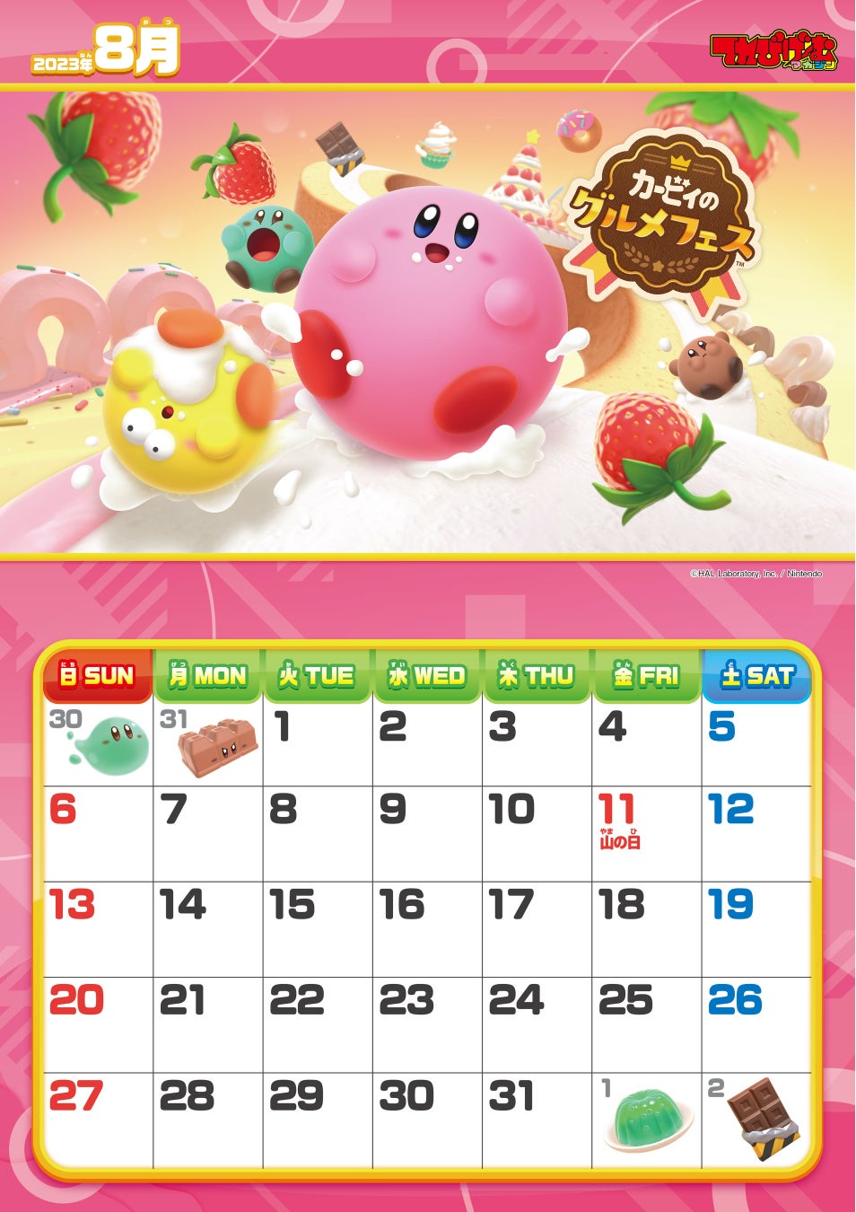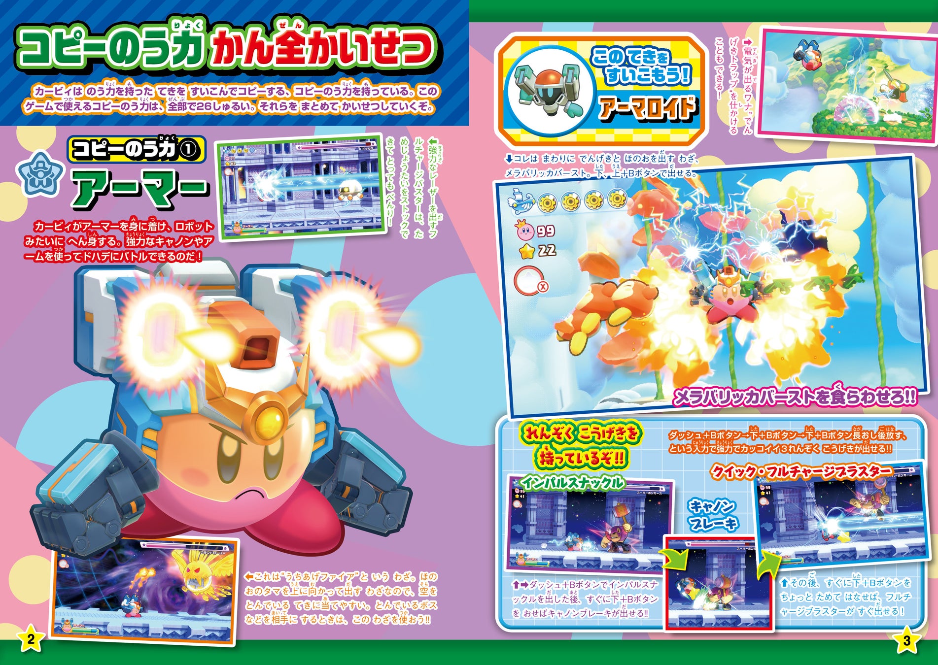 小冊子は『星のカービィ Wii デラックス』に登場するコピー能力を52ページで解説。さらに新学期に合わせて2023年4月から2024年3月までの人気ゲームが満載のカレンダーが綴じ込み付録となっています。