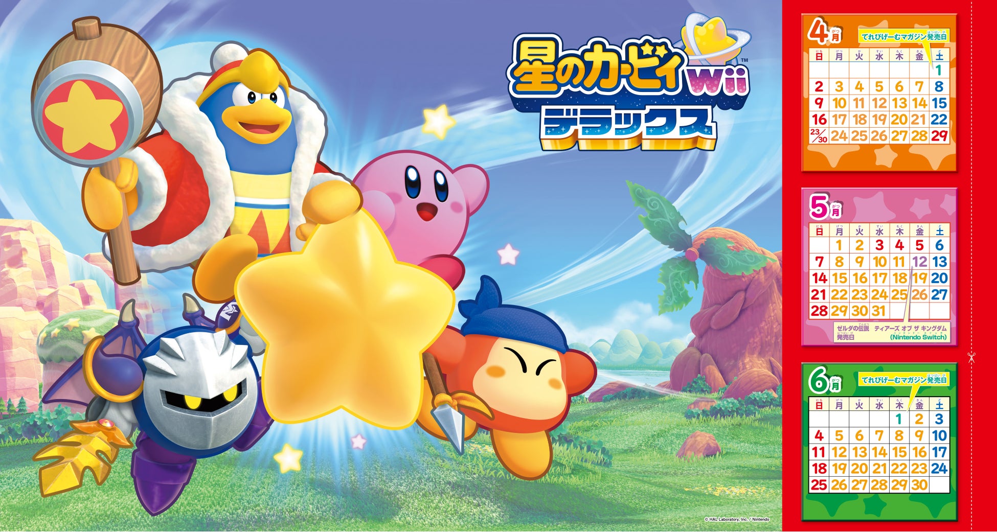 両面ポスター付録は片面が『星のカービィ Wii デラックス』のポスターカレンダー(4月/5月/6月)。もう片面も『星のカービィ Wiiデラックス』で、すべてのコピー能力を楽しめるスペシャルなポスターになっています。
