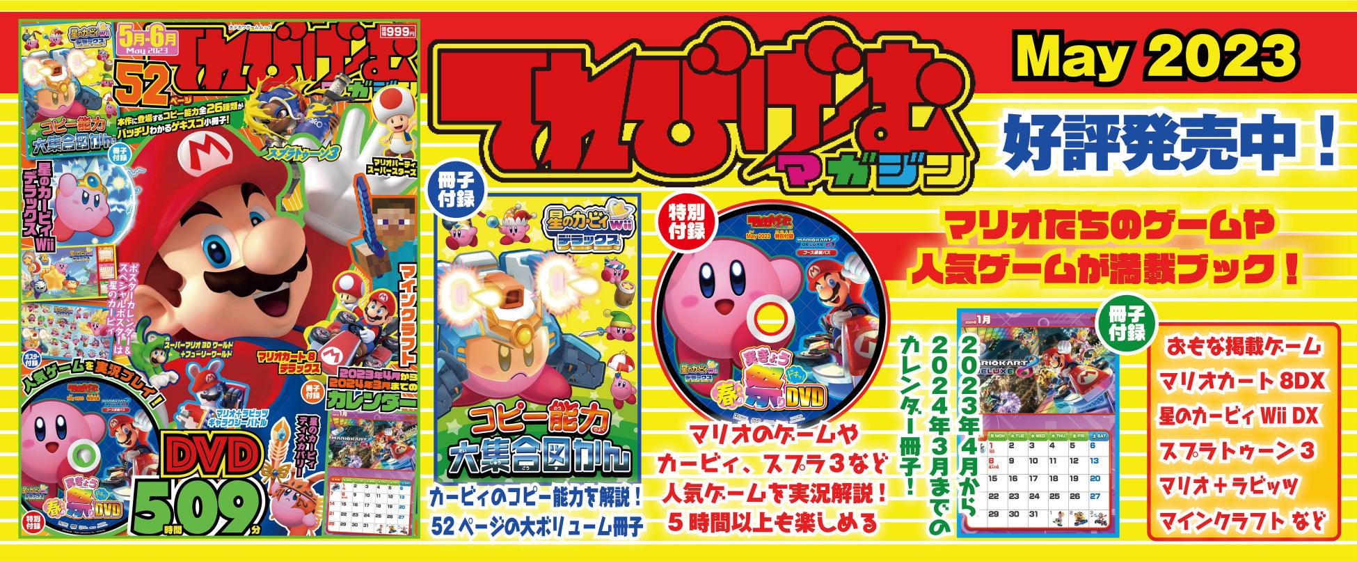 巻頭では『星のカービィ Wii デラックス』を特集。本誌内で14ページで本作の魅力を紹介。もちろん『マリオカート8 デラックス コース追加パス』や『マリオ+ラビッツ ギャラクシーバトル』など、人気のマリオたちのゲームはもちろん、『スプラトゥーン3』や『マインクラフト』などの人気ゲームの攻略情報や楽しい遊び方を大ボリュームでお届けしています。