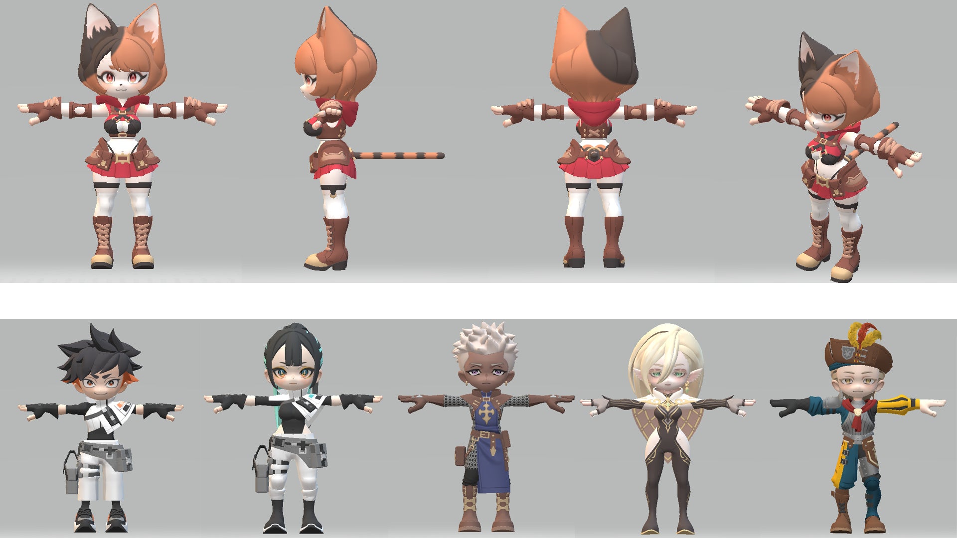 プレイヤーキャラクターとして最適な6名の3Dモデルとスプライトシートが含まれており、RPGにかぎらず、アクション等のゲーム制作に適した素材集です。