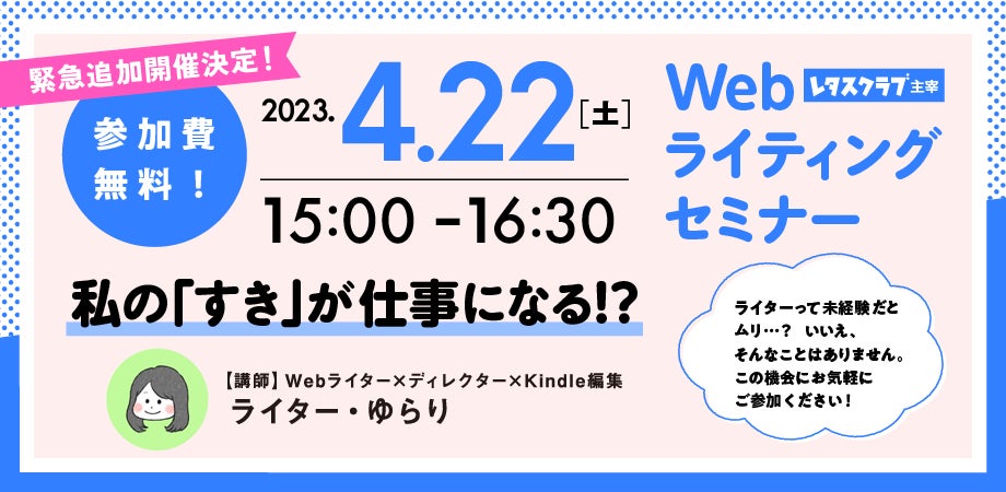 ぜひこのセミナーをきっかけにWebライティングのお仕事に興味を持っていただけると嬉しいです。