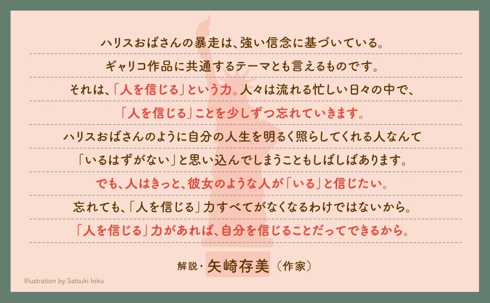 また、作家の矢崎存美氏による解説も掲載。著者のポール・ギャリコが本作にどんな思いをこめていたかを丁寧に読み解いています。