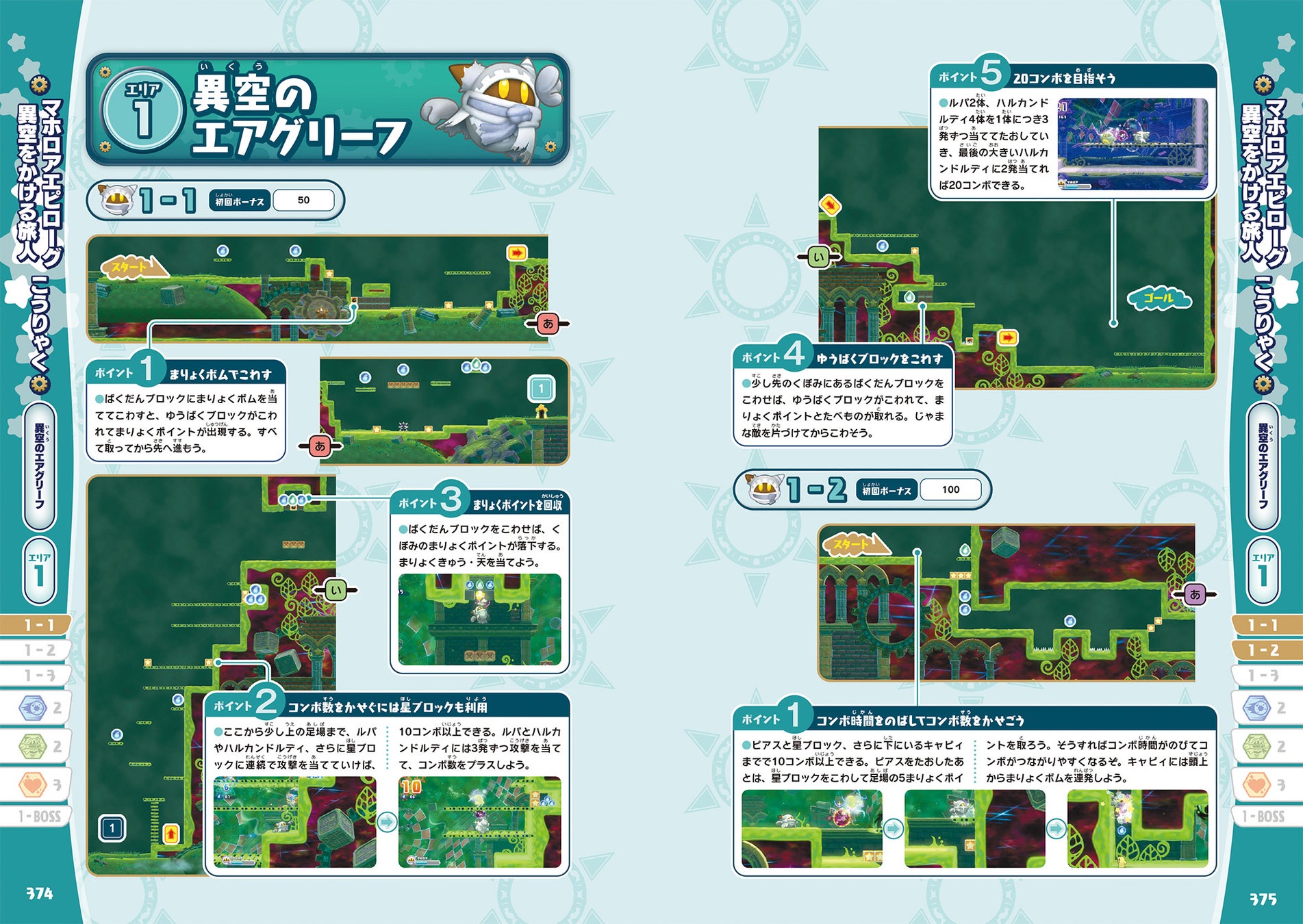 最終ボスを目指して、全8レベルを攻略するための全ステージをマップで完全解説。さらにすべての中ボス&大ボスの攻略方法も記載。また”わいわいマホロアランド”でスタンプをおしてもらえるスタンプチケットの入手場所もマップ上に掲載。
