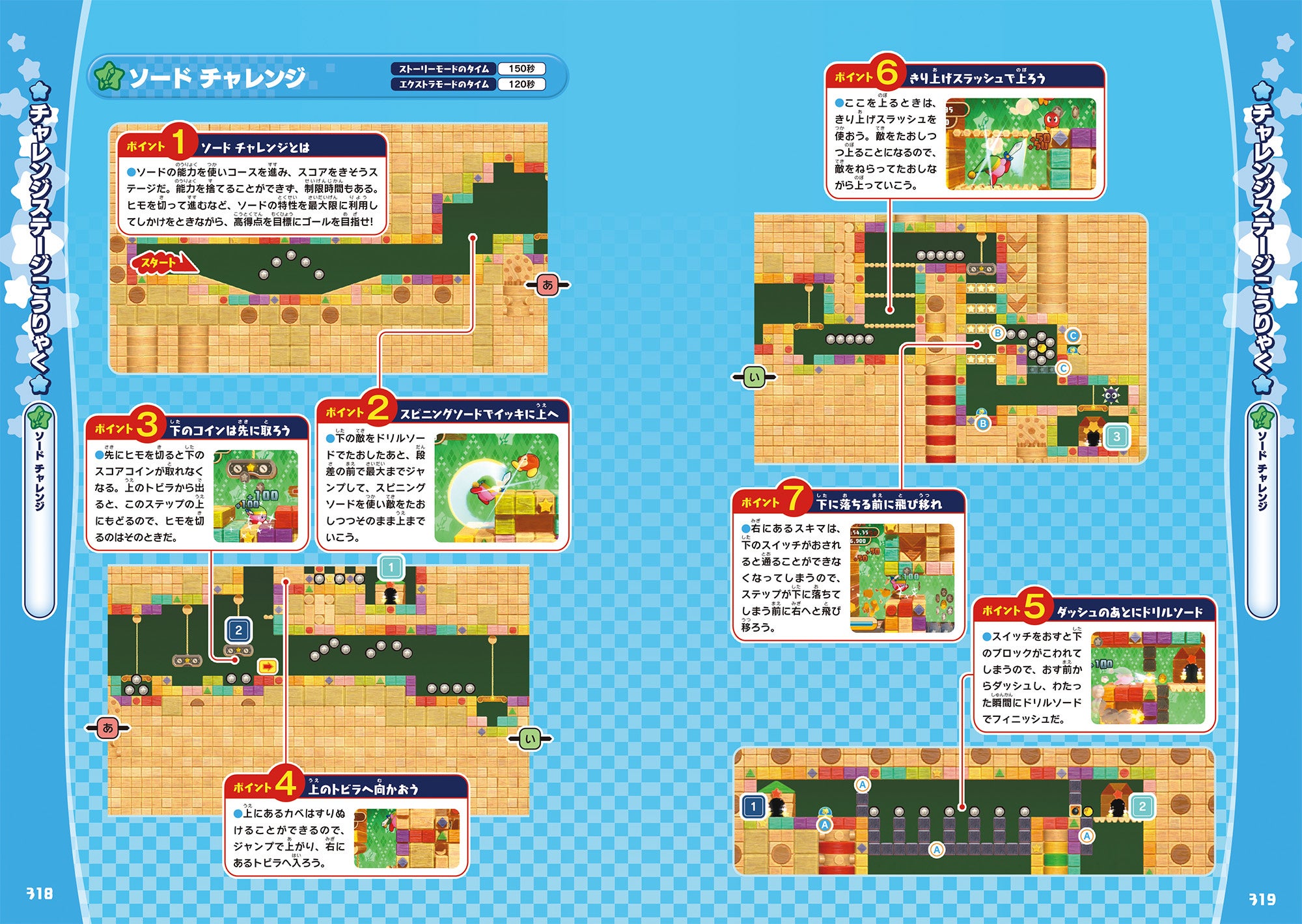 コピー能力とアクションを駆使して、最高スコアでのゴールを目指すチャレンジステージを、本作で新たに追加された”サンド”と”アーマー”も含めて全9ステージを完全掲載。プラチナメダルを目指して、とことんやり込むための情報が満載。