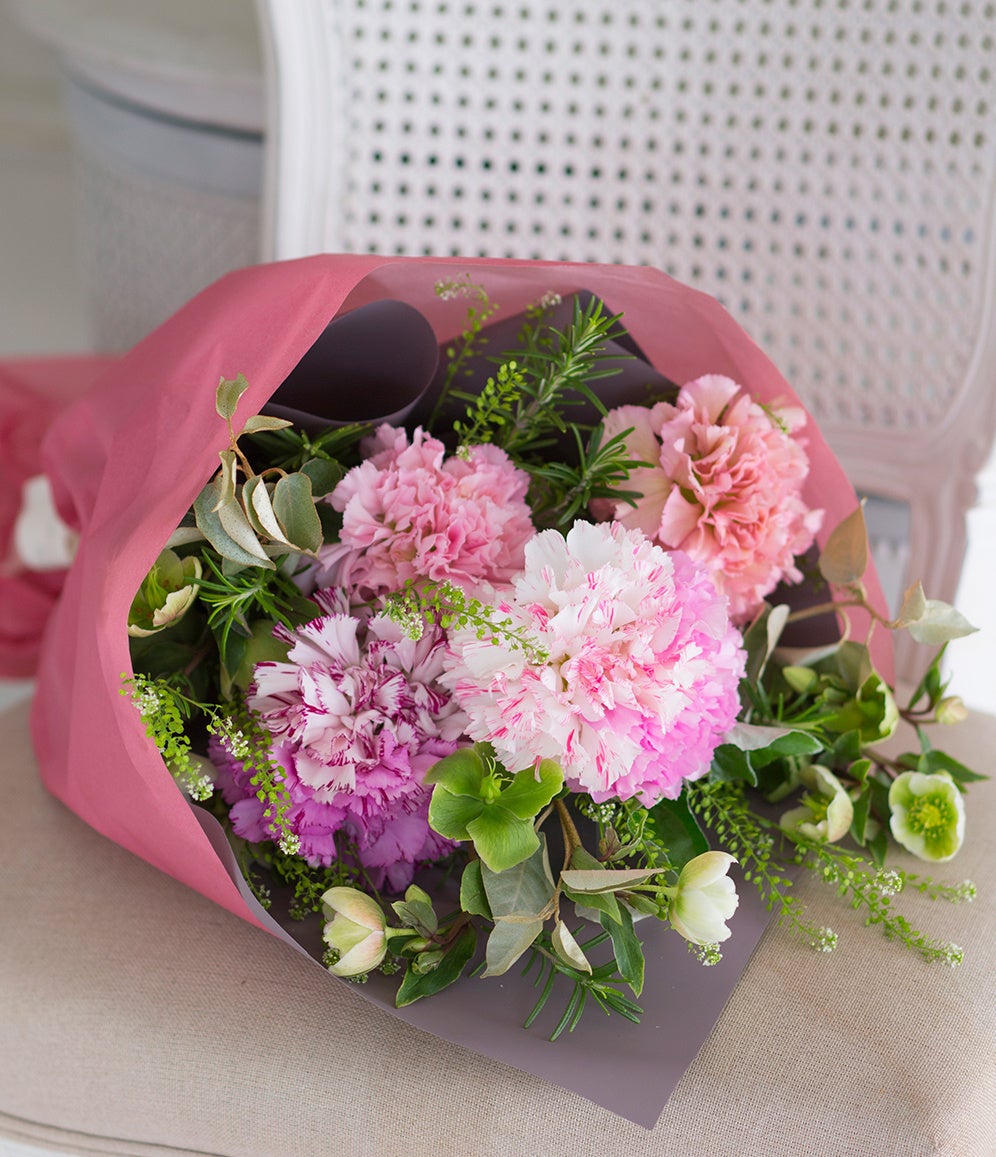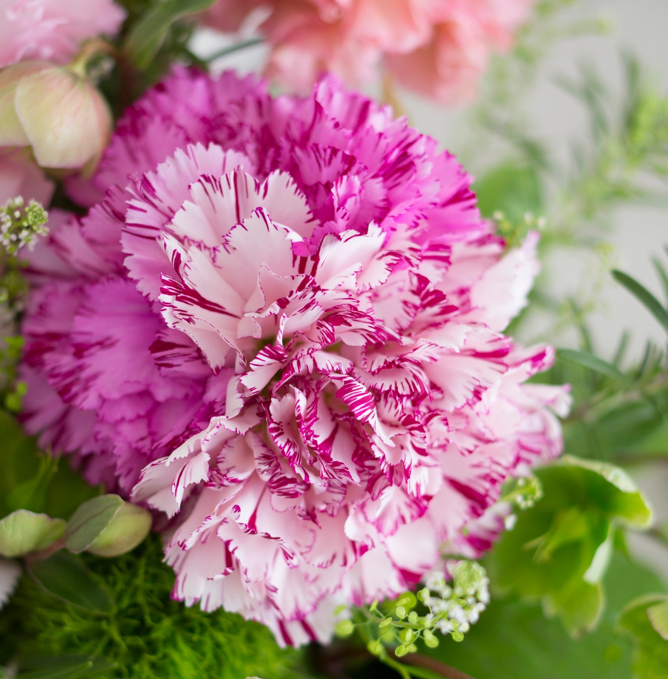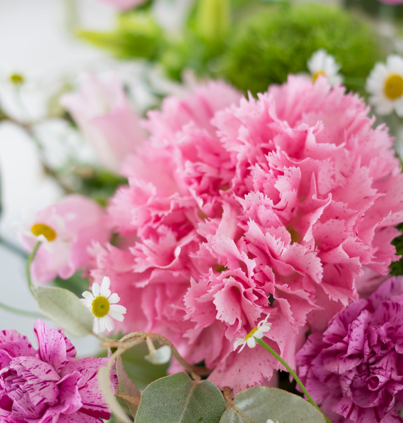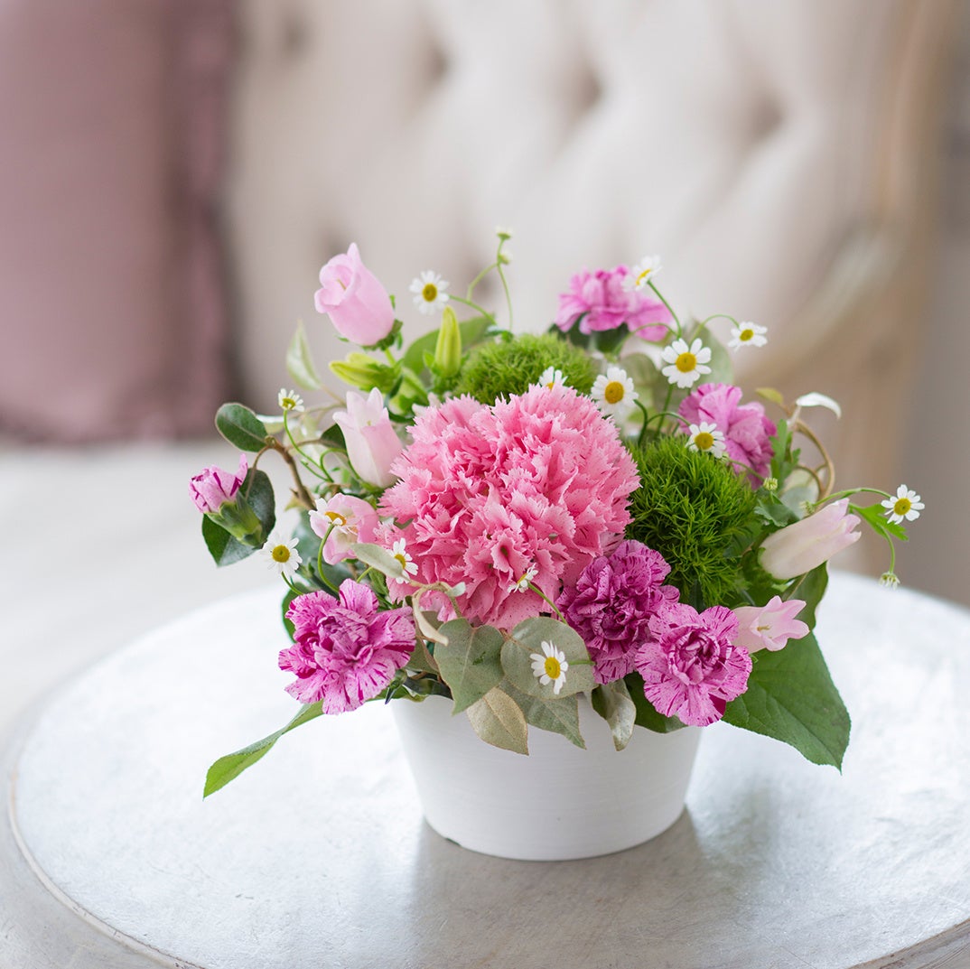 1.カーネーションの色合いは、女性ホルモンを活性化し、幸福感を促す働きがあるとされるピンクに限定。