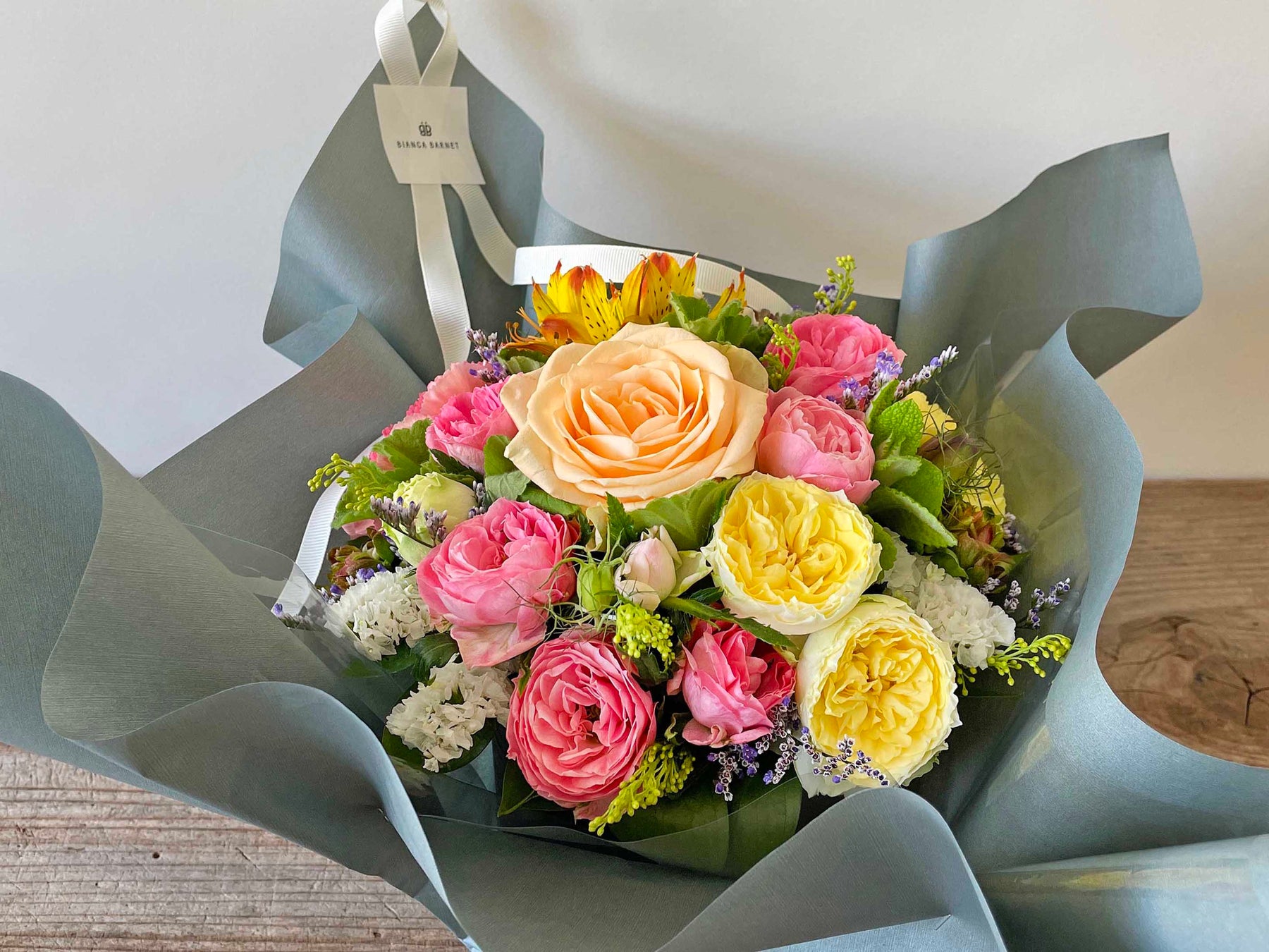 ギフト券にセットするのは季節を楽しむおまかせアレンジメント。「BIANCA BARNET(ビアンカバーネット」のデザイナーが季節感あふれる旬な花々を使ってご用意します。お花のボリュームやチケットの数からお選びいただけます。