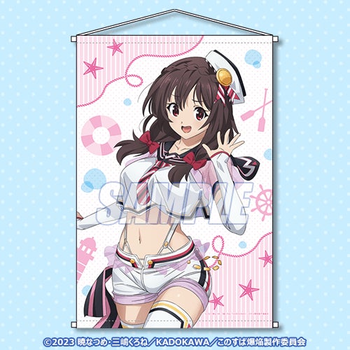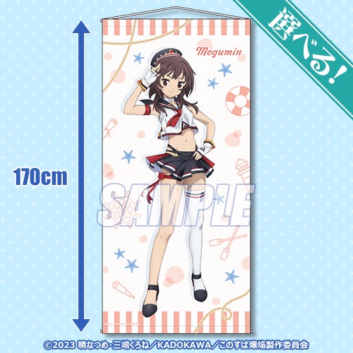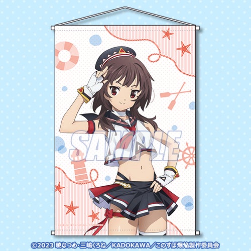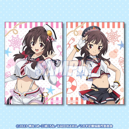 商品はめぐみんとゆんゆんの新規描き下ろしイラストを含むオリジナルグッズとなります。二人の「マリンルック」をテーマに描いた描き下ろしイラストの商品や、ミニキャライラストを使用した商品など豪華景品が盛りだくさん!! また期間中に“リツイートキャンペーン”として、くじ引き堂のTwitter公式アカウントをフォロー&リツイートすると、抽選で3名様に「B賞 アクリルスタンドフィギュアセット」をプレゼント!!
