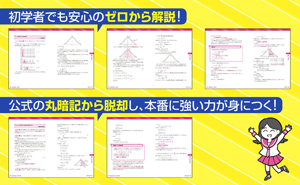 本書では、問題の解法はもちろんのこと、用語や公式の意味、公式を導く流れについても「統計的な推測」の知識がゼロでも基礎の基礎から丁寧に解説しています。