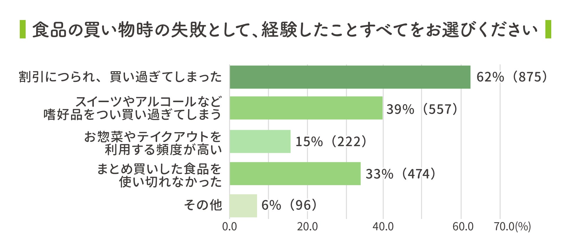 食品の買い物時の失敗として経験したことを教えてください。(n=1,397)