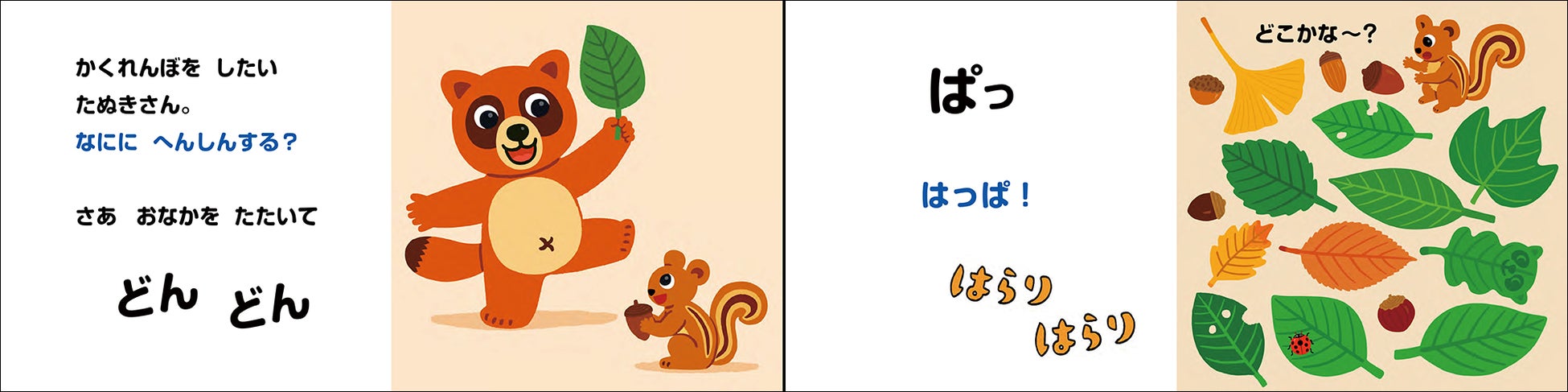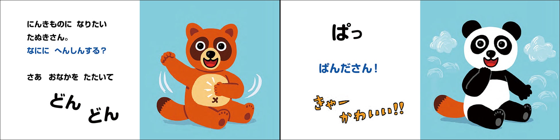 いしかわこうじさんらしい鮮やかな色彩と、たぬきのキャラクターの豊かな表情が子どもの目を惹きつけます。