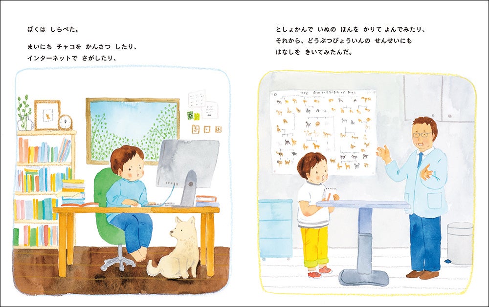 本作は、「愛があふれている!」「素晴らしい自由研究!」「最後で涙が!」などとSNSで大反響を呼び、各ウェブメディアやTV等でもとりあげられた小学2年生(7歳)の男の子しゅんくんの、「ぼくの犬はどうしてこんなにかわいいのか」を探る夏休みの自由研究から生まれた絵本です。