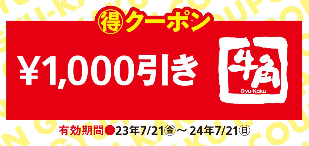 ※対象店舗:全国の「牛角」で利用可(※牛角食べ放題専門店、牛角焼肉食堂、海外牛角では使用不可)