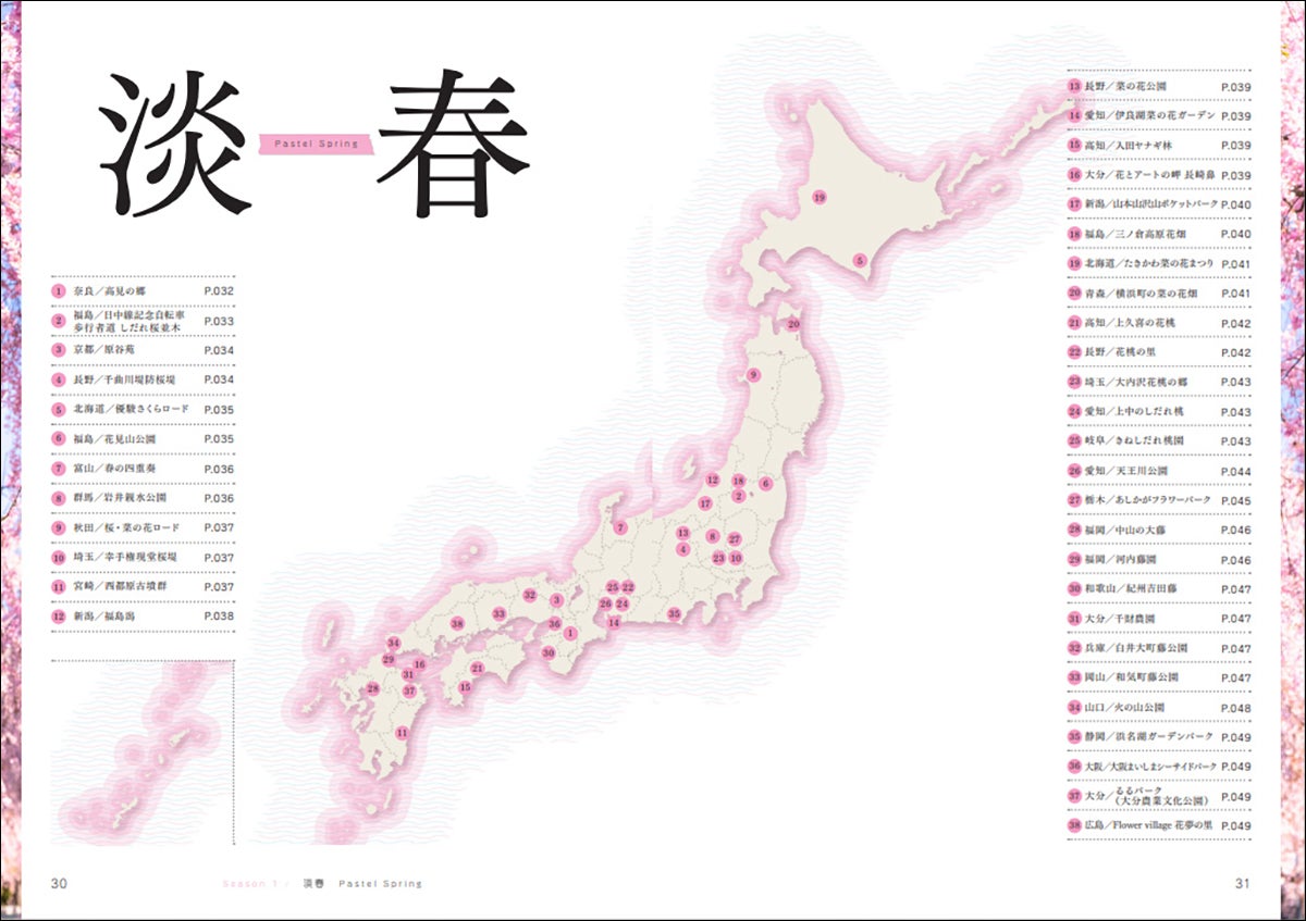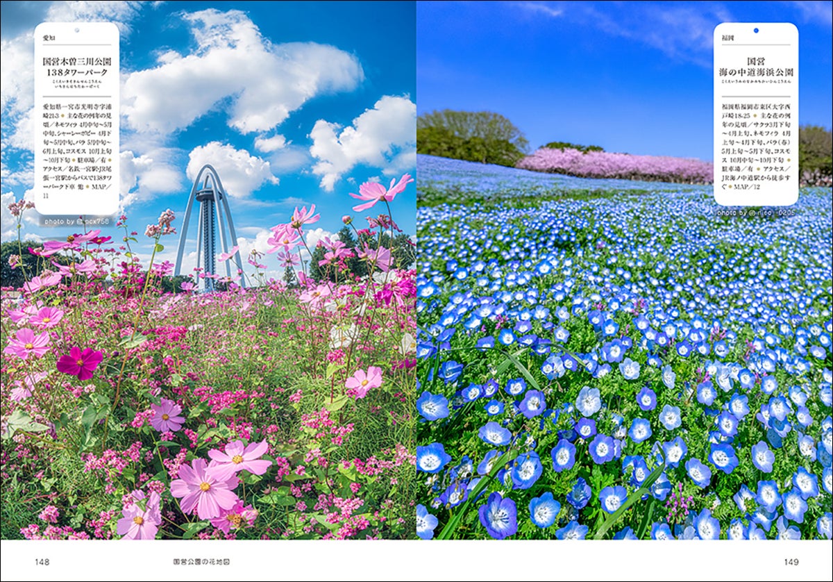 日本の花の名所と四季の花風景を美しい写真で紹介しながら、実際のお出かけでも役立つ情報をしっかり掲載しています。