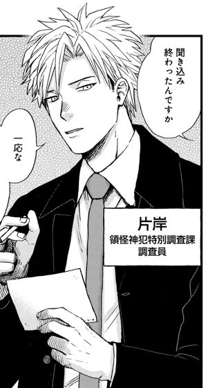 有能だが、陰鬱な印象の見た目の男で、言動もやや独特な変わり者。片岸の義理の兄でもある。