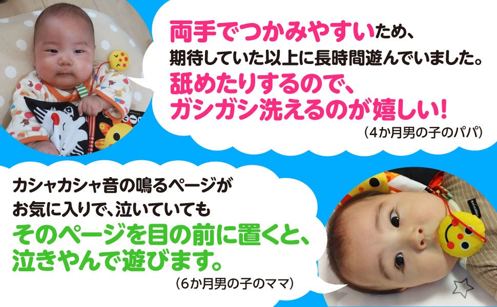 Sassyの「カミカミみつばち」をはじめ人気おもちゃが多数登場し、おもちゃと合わせた立体的な遊び方・赤ちゃんとのコミュニケーションを楽しめます。