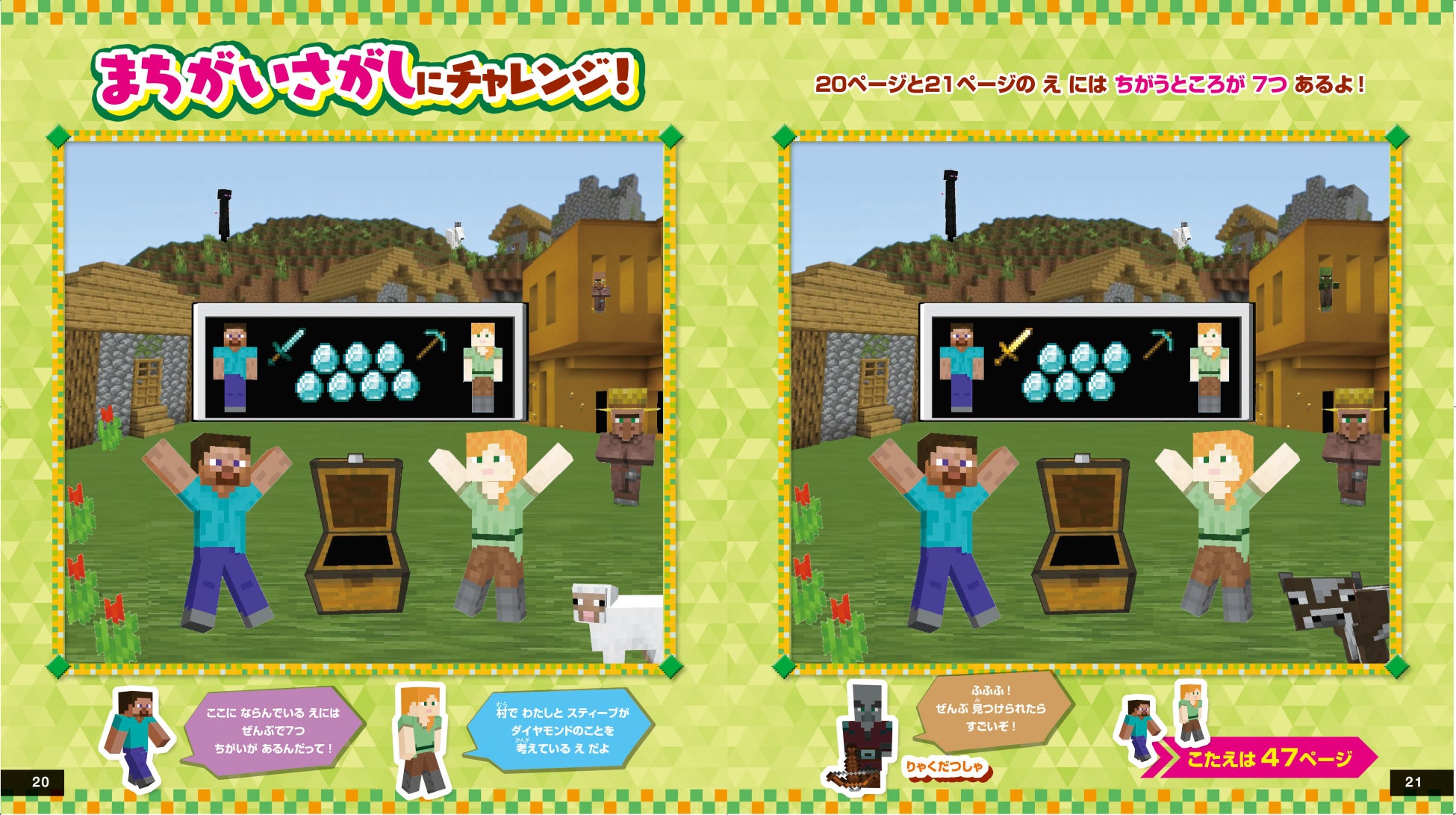 子どもが飽きないしくみもたくさん! マインクラフトにまつわるコラムや間違いさがしなどの遊びページも充実。持ち歩きやすいサイズで、外出のお供にも最適です。