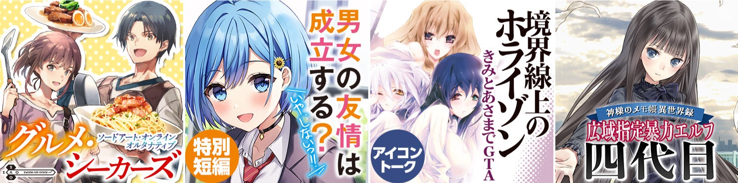 さらに、アニメ化決定の『男女の友情は成立する?(いや、しないっ!!)』の特別短編連載や、『境界線上のホライゾン』のアニメBD特典収録の外伝が「アイコントーク形式」で登場する『GENESISシリーズ 境界線上のホライゾン きみとあさまでGTA』。杉井光の人気作『神様のメモ帳』の異世界転生スピンオフ『神様のメモ帳異世界録 広域指定暴力エルフ四代目』など超豪華ラインナップでお届け!