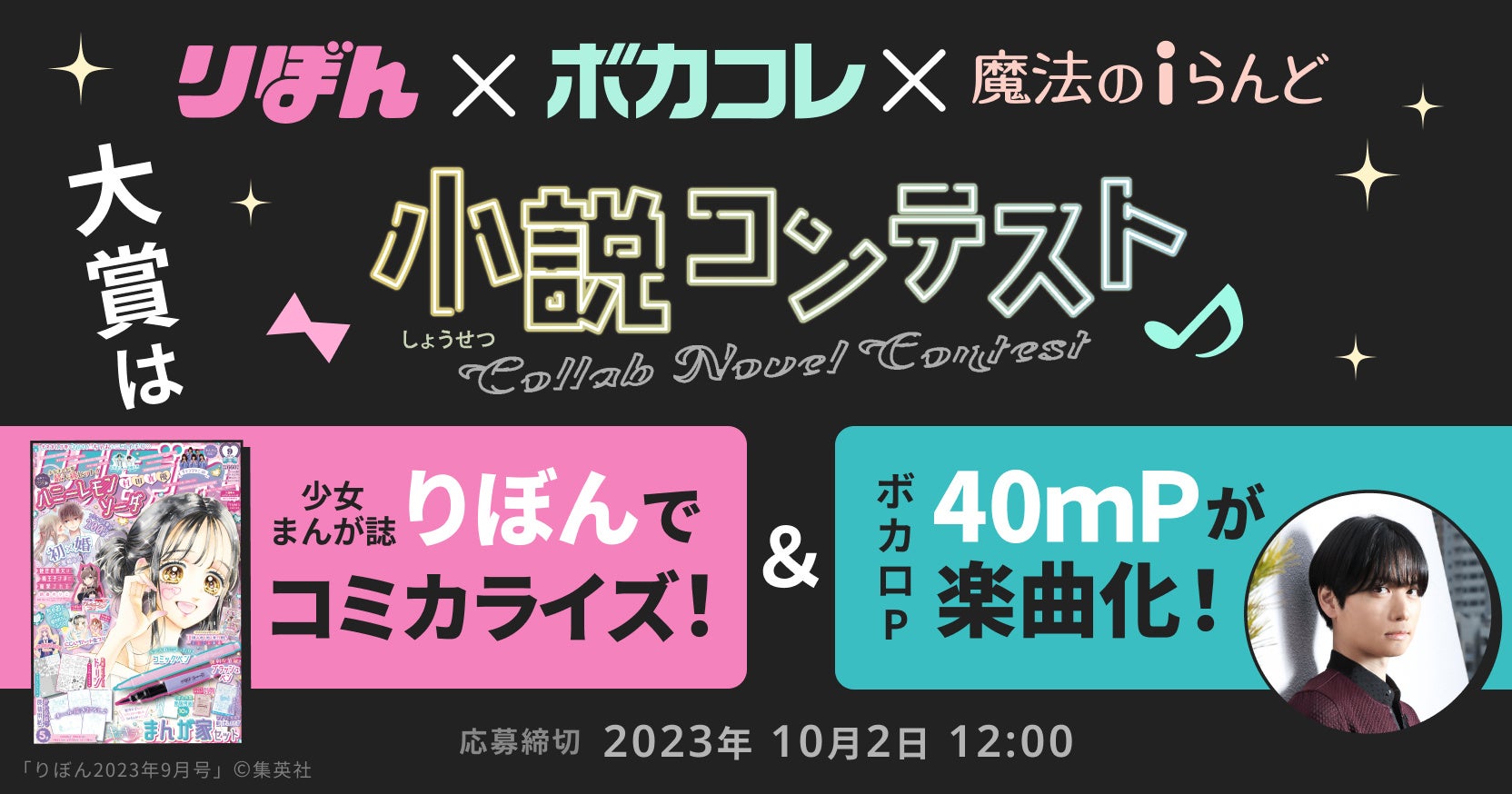 少女まんが誌「りぼん」とネット最大のボカロイベント「The VOCALOID Collection(ボカコレ)」および小説投稿サイト「魔法のiらんど」によるコラボ小説コンテストを開催。2023年8月3日より応募受付を開始致しました。