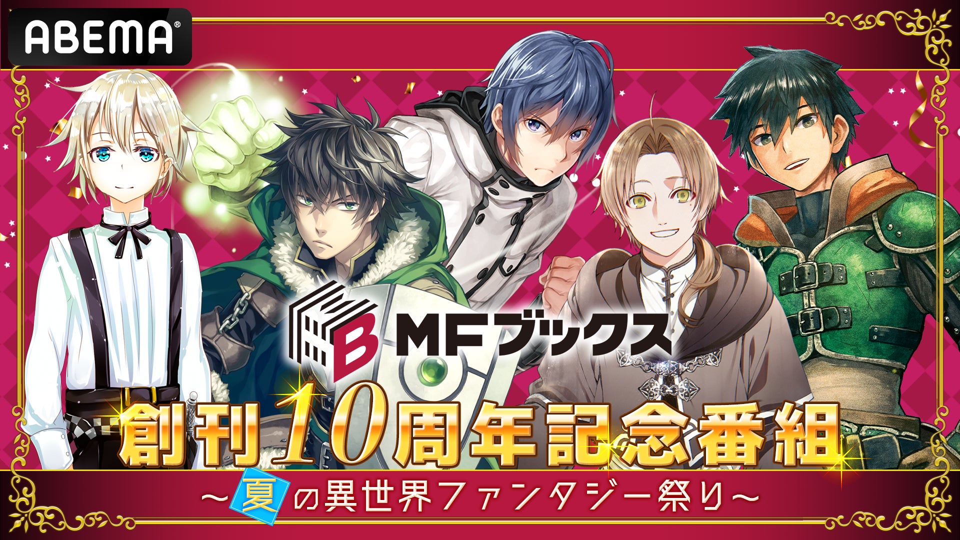『MFブックス創刊10周年記念番組 ~夏の異世界ファンタジー祭り~』 MC:向清太朗(天津) 渋川難波(KADOKAWAサクラナイツ) 森遥香(ホリプロ) 放送日:2023年8月27日(日)午後5時30分〜夜10時50分 放送媒体:ABEMA 放送チャンネル:アニメLIVEチャンネル3 番組URL: https://abema.tv/channels/anime-live3/slots/D4Kc4dmX3QaM4j  |