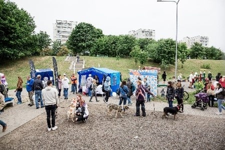 マルシェ :犬中心の関連商品を扱う店舗が40店舗以上出店!散歩しながらマルシェを楽しめます。