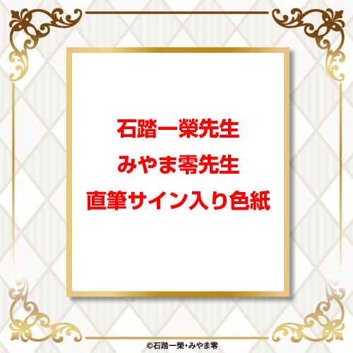 【10連セット】を購入いただいた方の中から、抽選で先着3名様に「石踏一榮先生・ みやま零先生直筆サイン入り色紙」をプレゼント!!