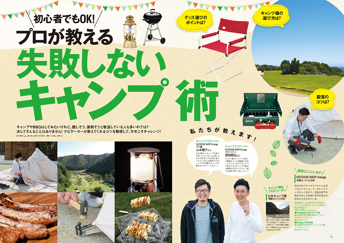 これからキャンプをはじめたい初心者は必見! キャンプ場や道具の選び方、BBQのコツ、キャンプ用語の解説からテント・タープの設営の仕方まで、失敗しないキャンプのノウハウがこの一冊に凝縮されています!