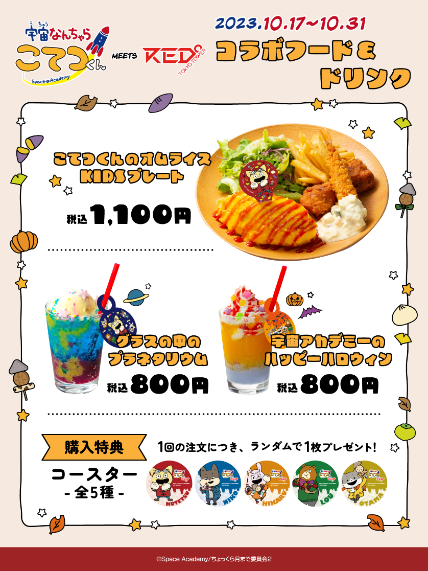 宇宙をイメージしたドリンクや、お子様や大人も楽しめるコラボフードを販売致します。
