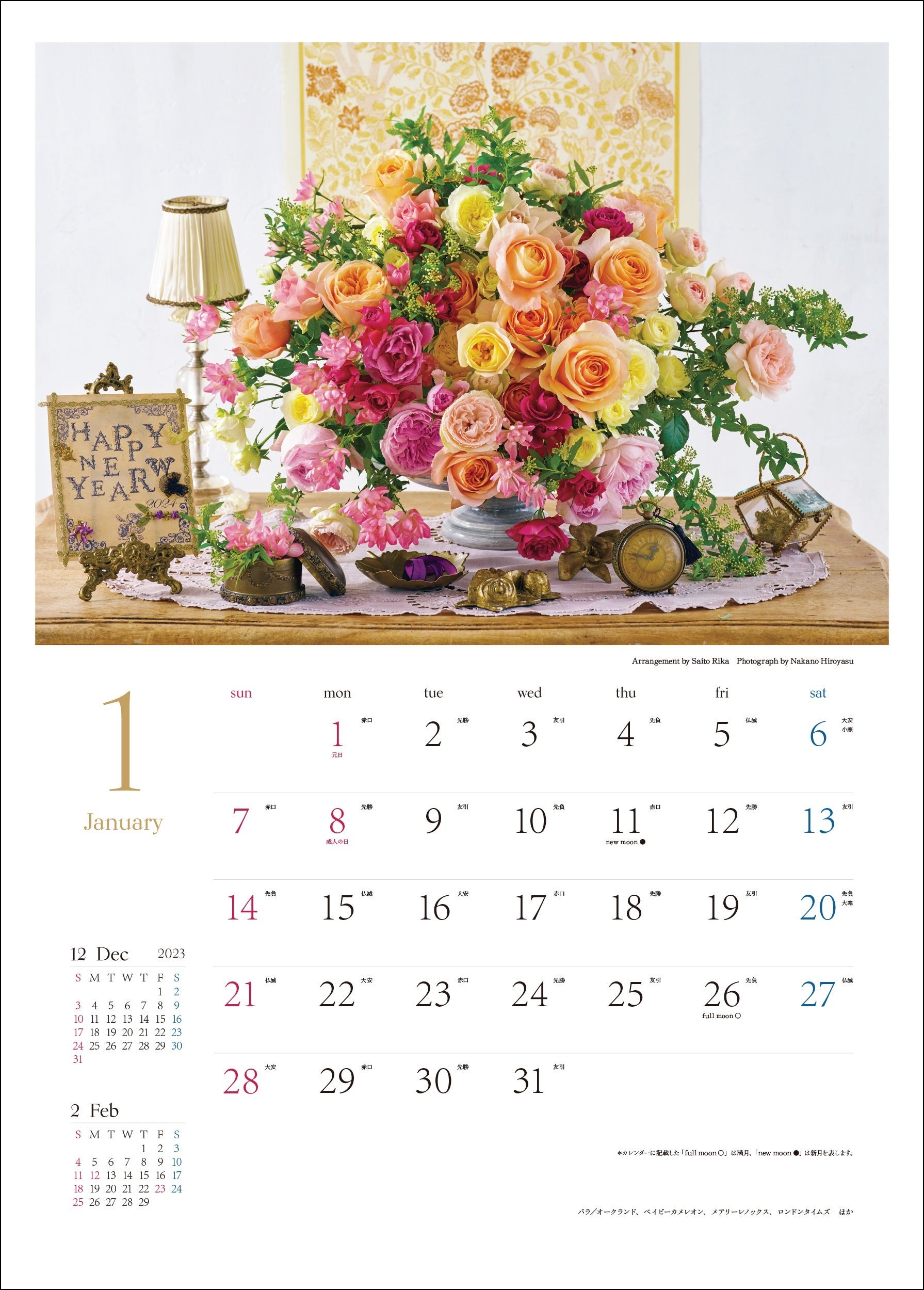 身近に楽しむ旬の花のアレンジ「12の花あしらいカレンダー 2024 卓上版」