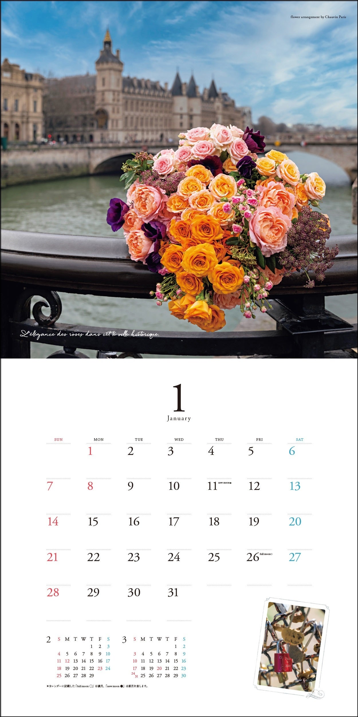 パリのエスプリ溢れる花カレンダーで、眺めるたびに、まるで現地に身を置いているかのような優雅なひと時を味わえます。