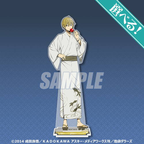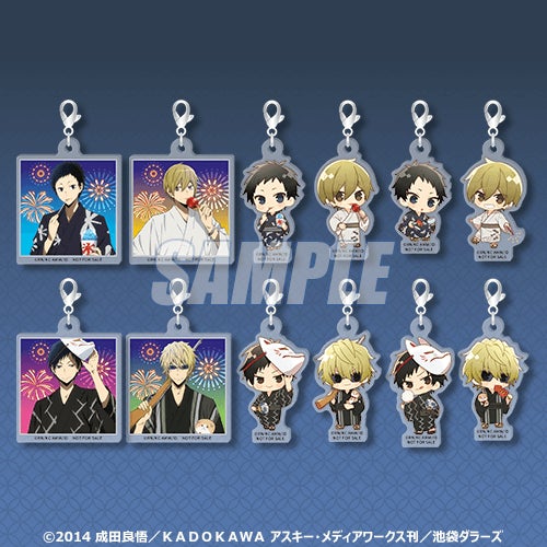 商品はお祭りをテーマとした竜ヶ峰帝人・紀田正臣・折原臨也・平和島静雄の、新規描き下ろしイラストによるオリジナルグッズとなります。S賞はキャラクターを選べる「アクリルスタンド」です。また、お祭りテーマならではの「うちわ」はキャラクターと名前のデザインになっており、推しうちわとしても使用できます! 【10連セット】購入で「ハート型缶バッジ」や「アクリルチャーム」がもらえるキャンペーンも実施いたします。お見逃しなく!