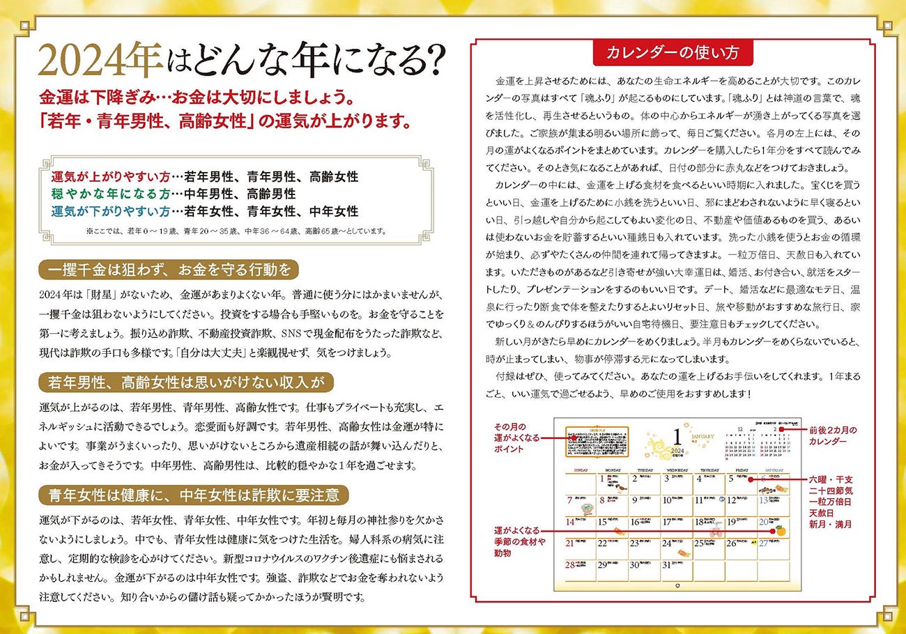 書名:中井耀香の金運上昇カレンダー2024 魂ふり