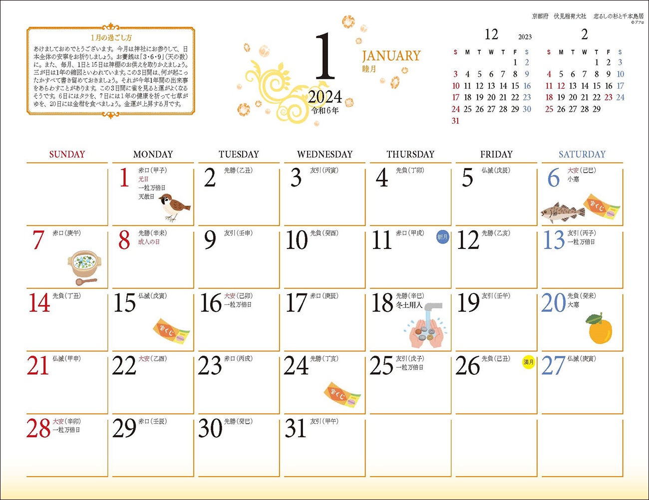部屋に飾るだけで金運アップ、開運習慣も身に付く、文字も大きく運のいい日が一目でわかる!と毎年大評判です。
