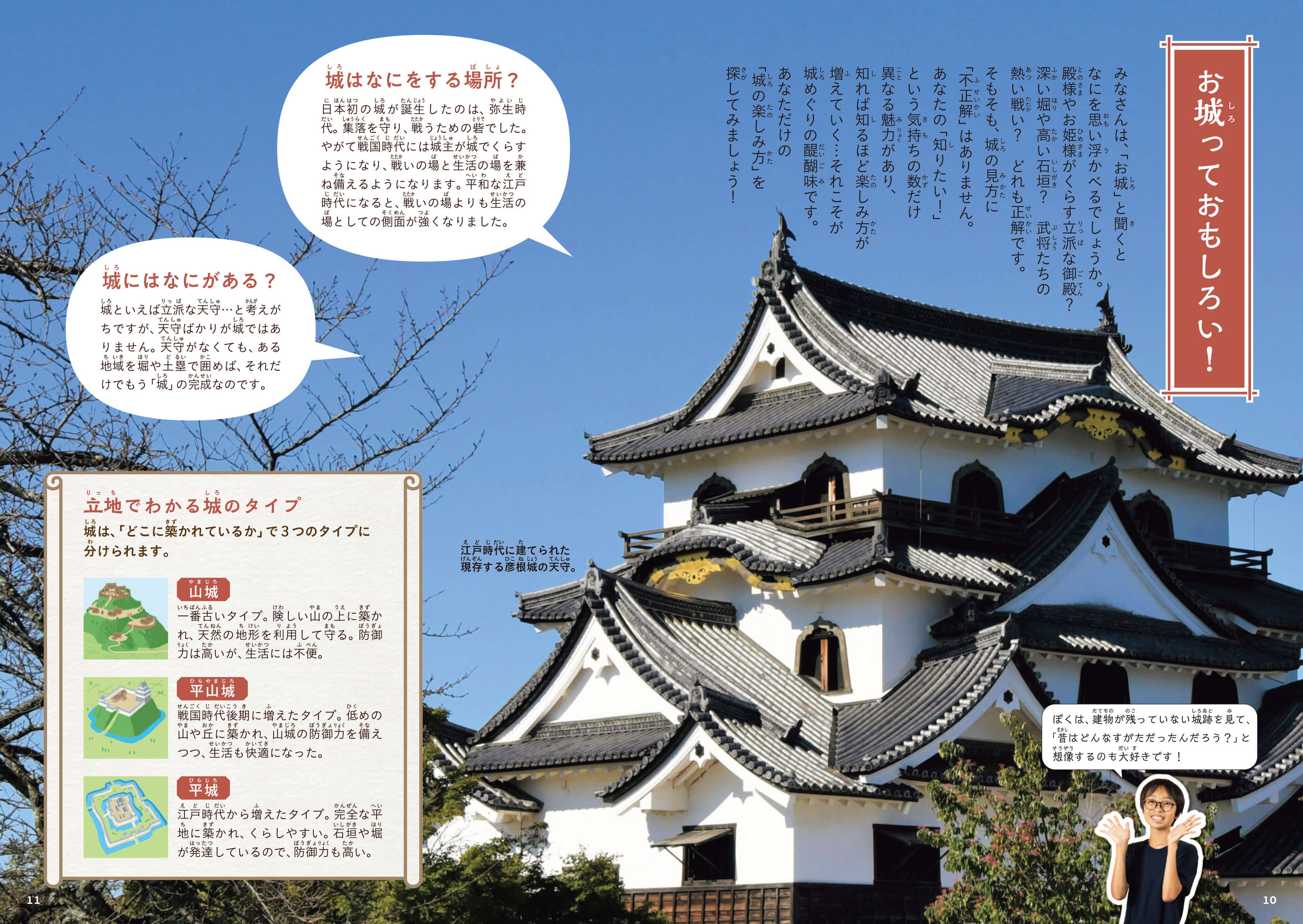 本書では、自ら足を運んだり文献を読んだりして得た幅広い知識を基にした、響大くんならではの視点とわかりやすい解説で、子どもはもちろん大人が読んでも楽しめるような構成に努めました。歴史やお城のことをよく知らない読者にこそ手に取ってもらい、お城を好きになってもらえる内容となっています。