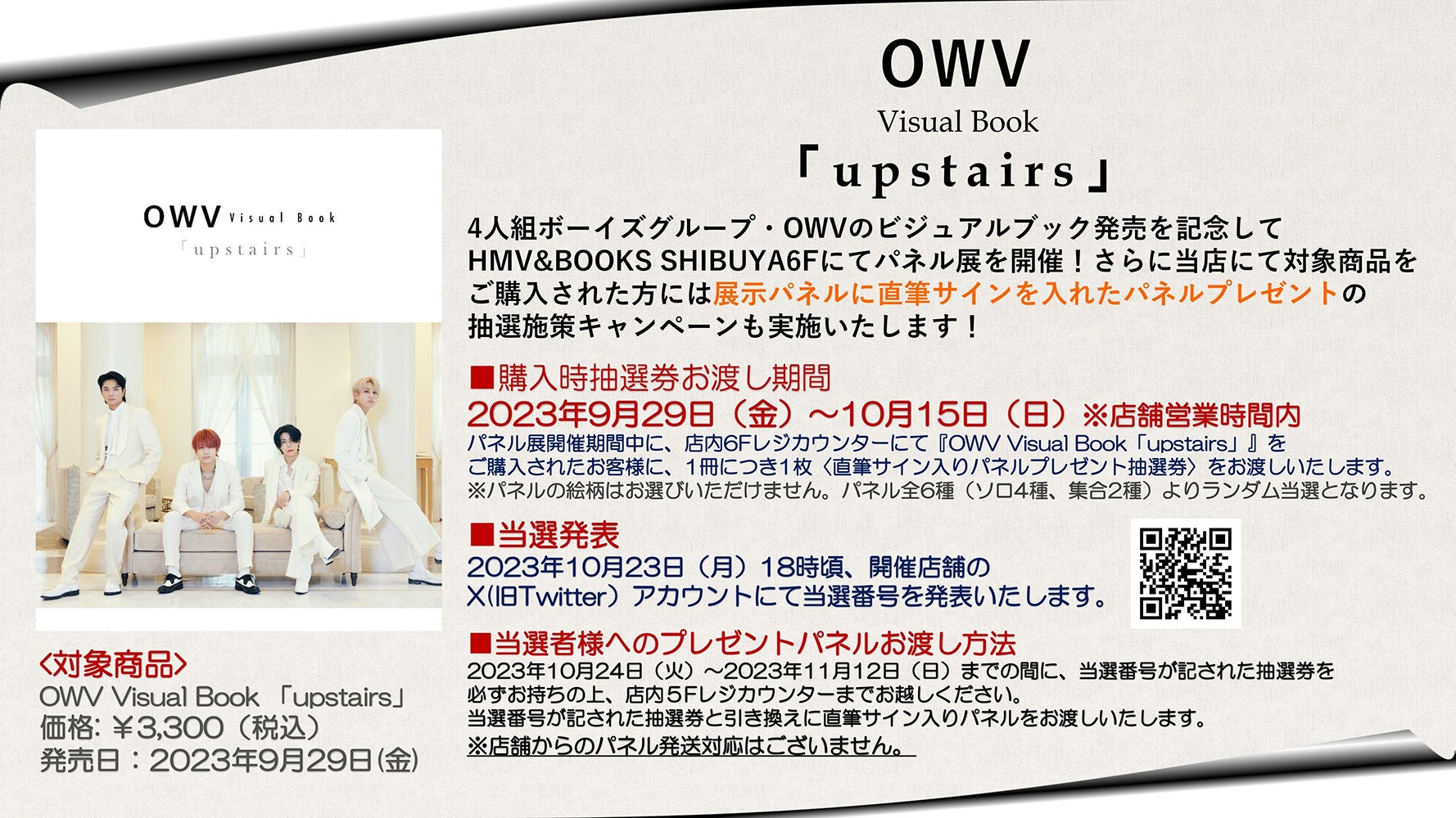 日本最大級のオーディション番組「PRODUCE 101 JAPAN」に出演した元練習生により結成された4人組ボーイズグループ・OWV。メンバーの中川勝就、本田康祐、佐野文哉、浦野秀太のセクシーでクールな魅力が凝縮された、待望のビジュアルブック「upstairs」が本日ついに発売!