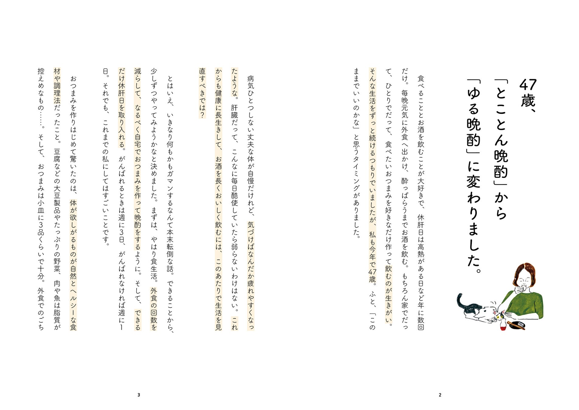 ゆる晩酌を行うことで、「痩せた」「健康診断の結果がAに!」「自分を振り返る時間ができた」「心に余裕が生まれた」「趣味の時間が生まれた」、そして何より、たまにの「とことん晩酌」がより楽しめるようになったという、いいことずくめの著者。