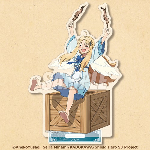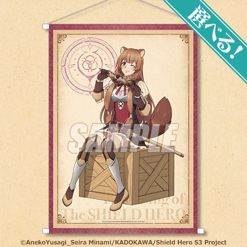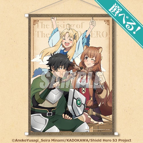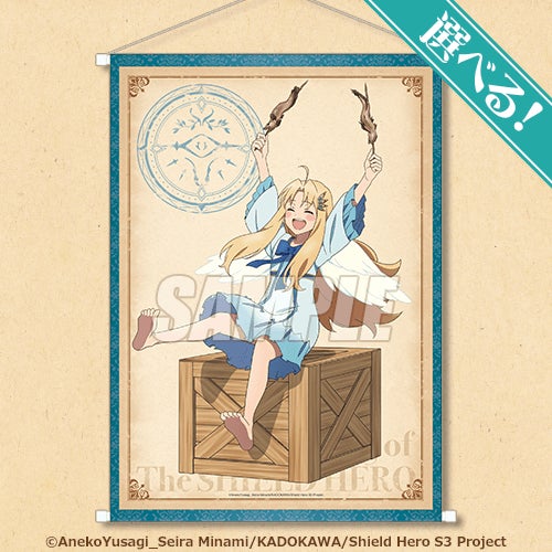 商品は尚文、ラフタリア、フィーロの3人が旅の途中で休息をとっているところをテーマにした、新規描き下ろしイラストや、各キャラの描き起こしミニキャライラストを使用したオリジナルグッズとなります。素敵なイラストを堪能できるB2サイズのタペストリーや、デスクなどに飾れるアクリルスタンドフィギュアなど、くじ引き堂でしか手に入らないオリジナルグッズを多数ご用意しております。