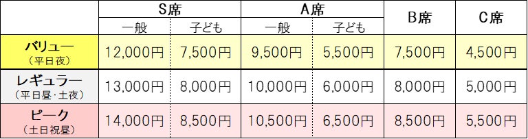 ※子ども料金はS席・A席の「ファミリーゾーン」のみ適用