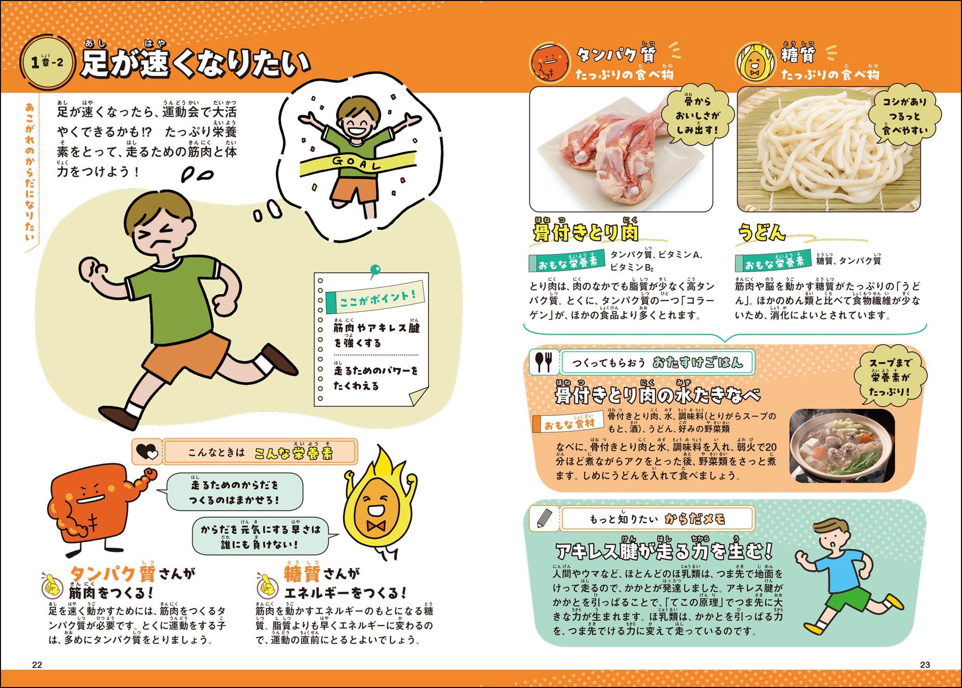「足が速くなりたい」「頭がよくなりたい」「風邪を治したい」、そんなときに、からだを助けてくれる食べ物がわかる一冊です。