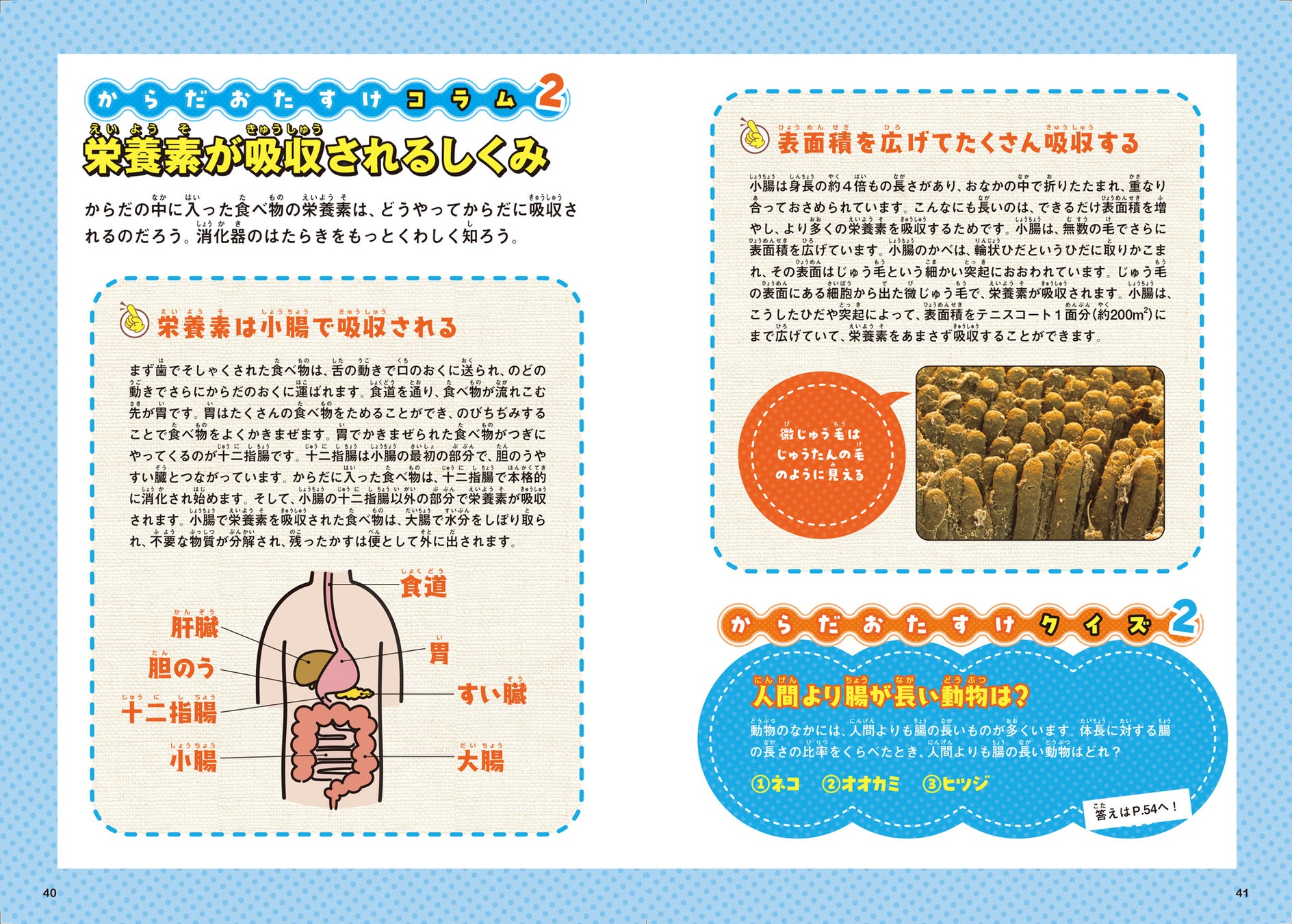 楽しいコラムやクイズもたくさん! 食べ物や栄養素だけでなく、からだのしくみについても学べます。