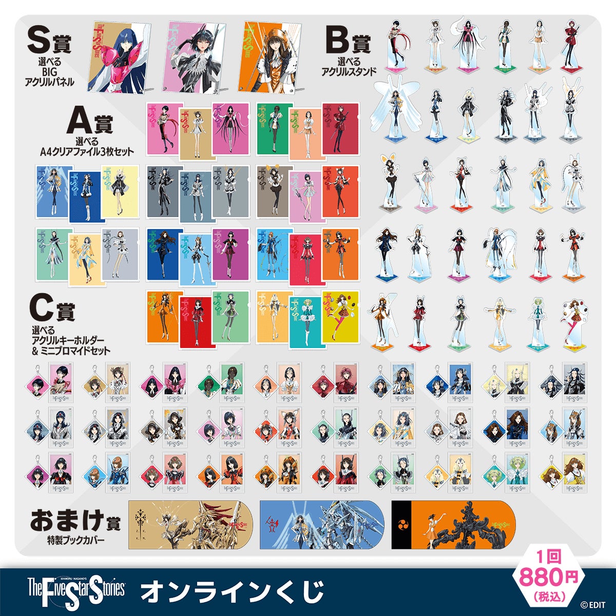 <ファイブスター物語 オンラインくじ 概要> 販売期間:2023年11月14日(火)12:00~2023年12月12日(火)11:59 販売価格:1回 880円(税込)※別途発送手数料が掛かります。 |