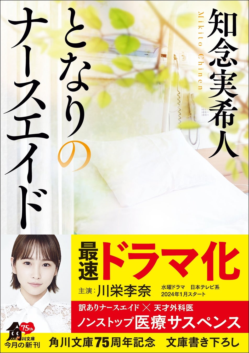 1949年に創刊した角川文庫は、おかげさまで創刊75周年を迎えました。これを記念し、豪華作家陣による書き下ろし作品を連続刊行中です。第1弾は伊岡瞬氏によるサスペンスミステリ『残像』(2023年9月刊)、そしてこのたび第2弾として知念実希人氏の『となりのナースエイド』を刊行いたします。