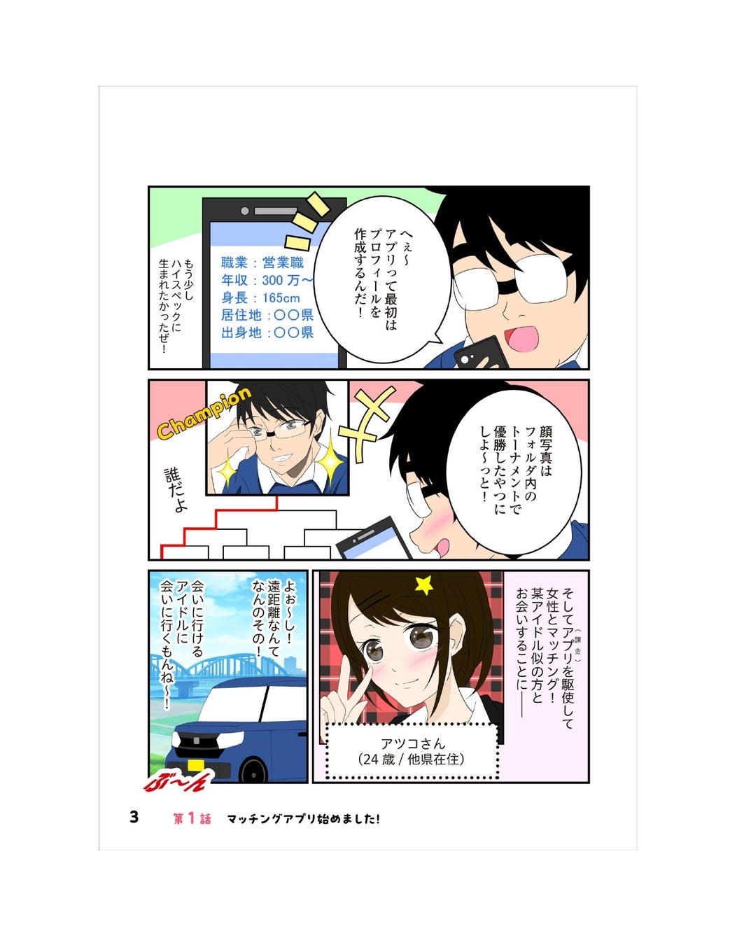 アラサー男性のマッチングアプリによる婚活エピソードを漫画にして配信。