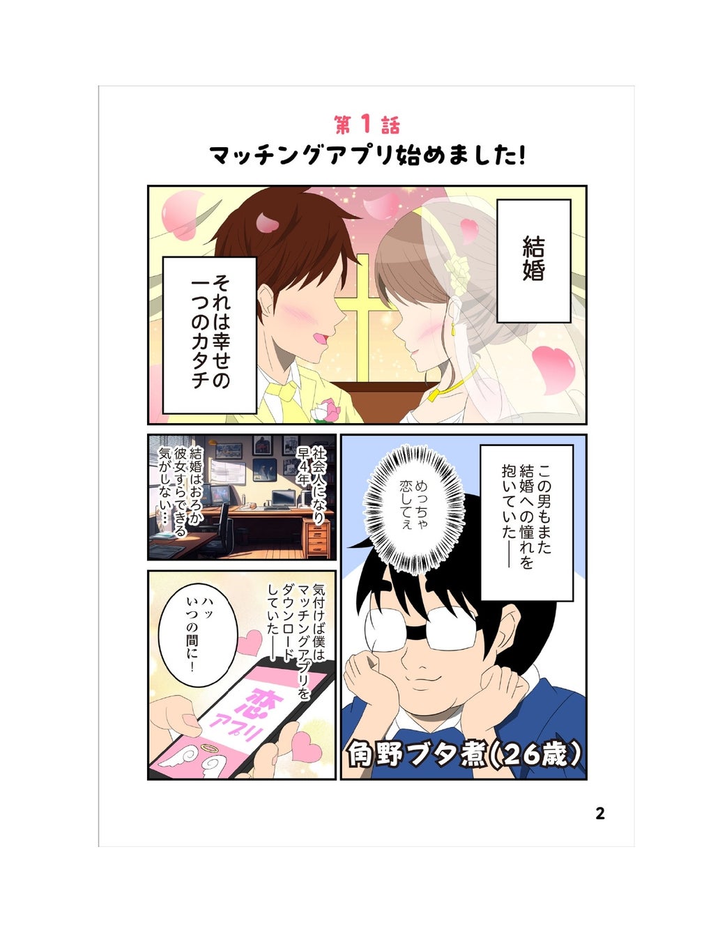 本作は、角野ブタ煮さんの体験を元に、運命の相手を見つけたいアラサー男性がマッチングアプリを駆使して、恋愛・婚活に奮闘する日々を描いたコミックエッセイです。