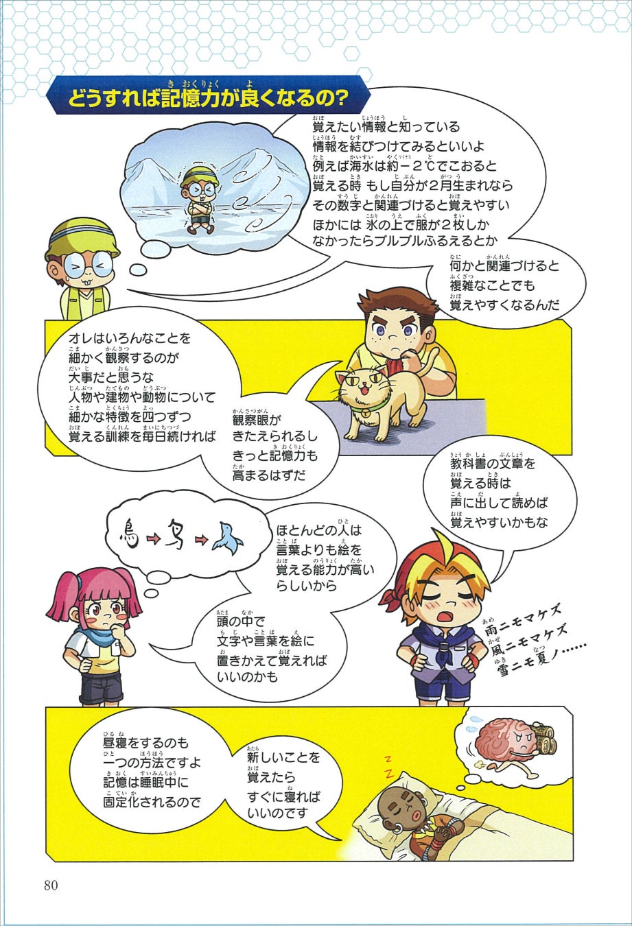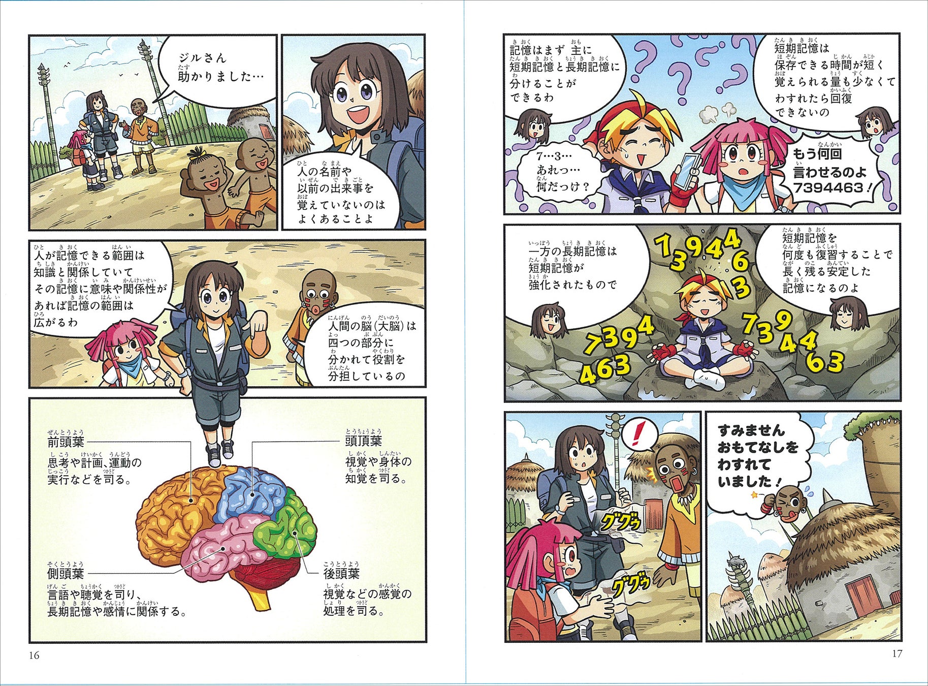 今回の「記憶メカニズム編」では、まんがのストーリーを追いながら、難しいテーマである「記憶」について分かりやすく学べるようになっております。
